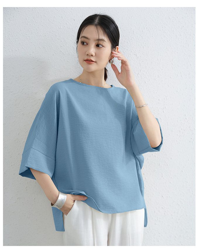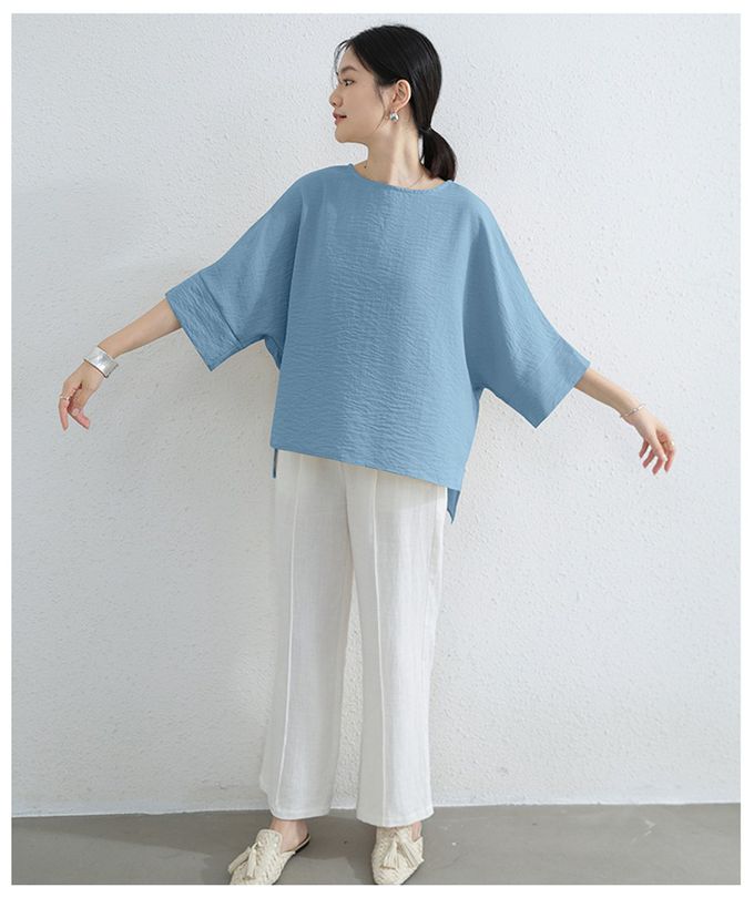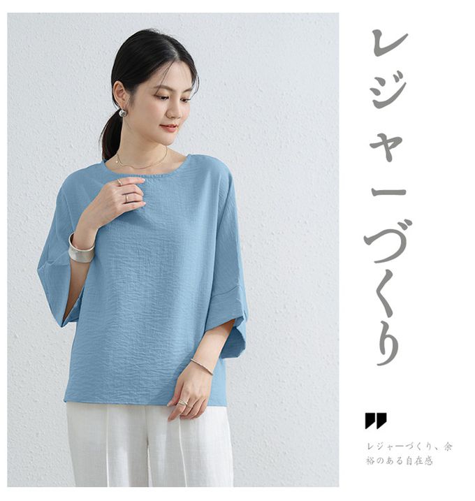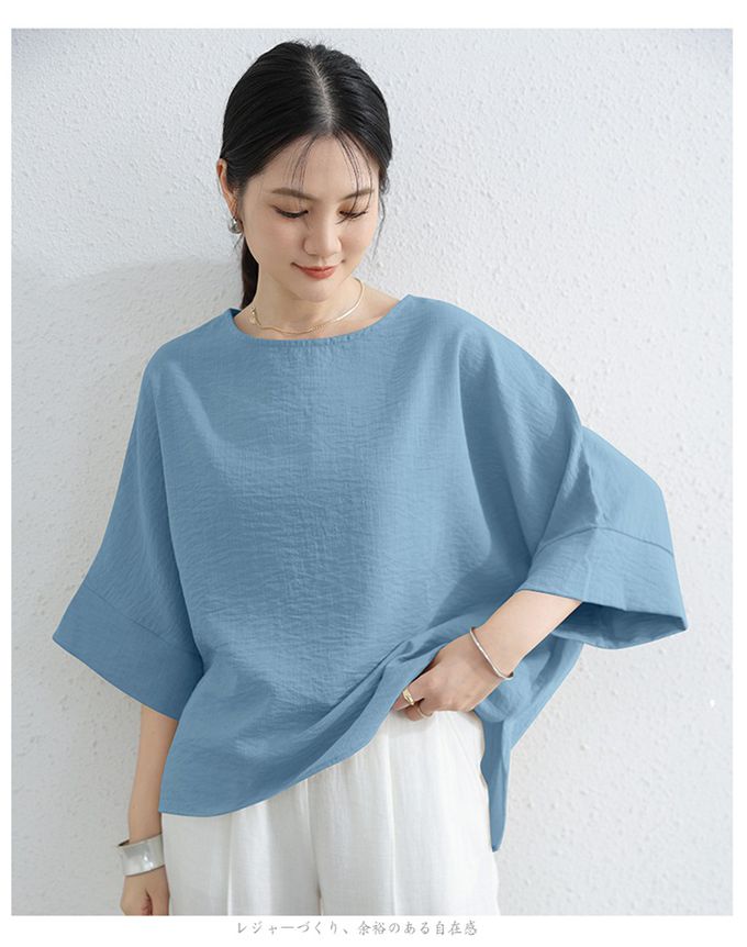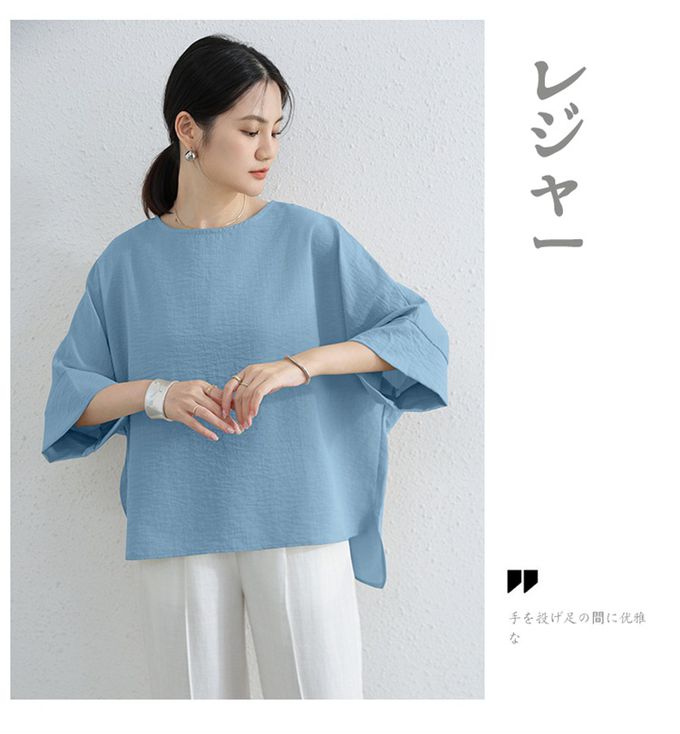 Yukié - 簡約優雅寬袖上衣-藍色 (F)