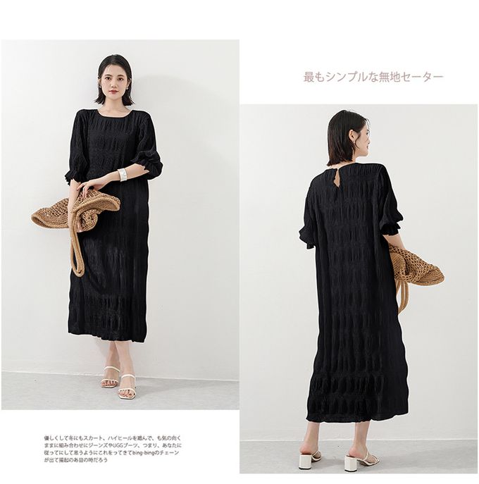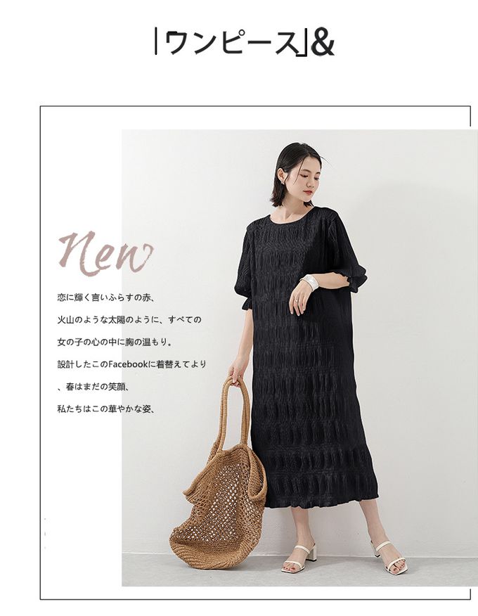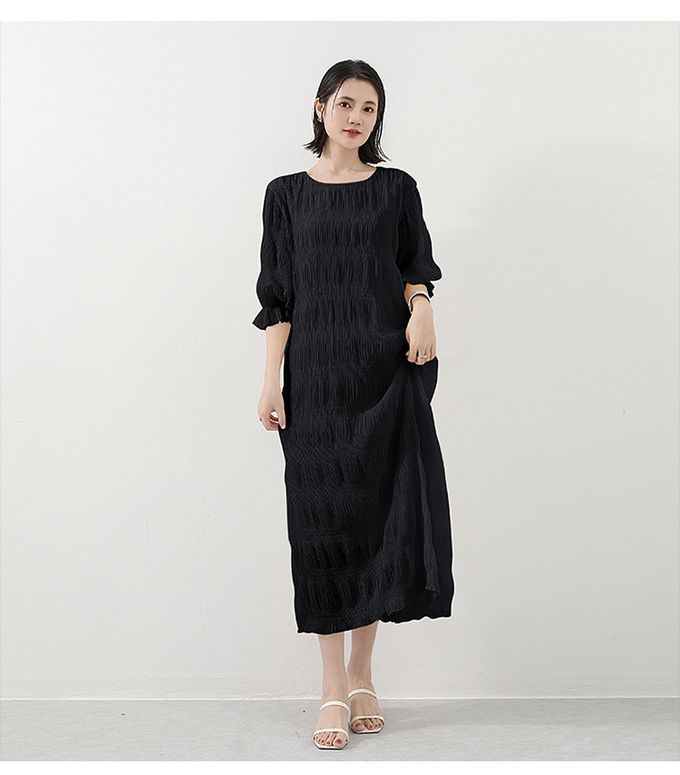 品名:氣質滿分壓摺雪紡泡泡袖長洋裝