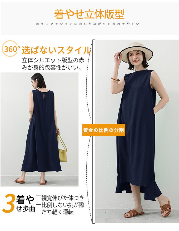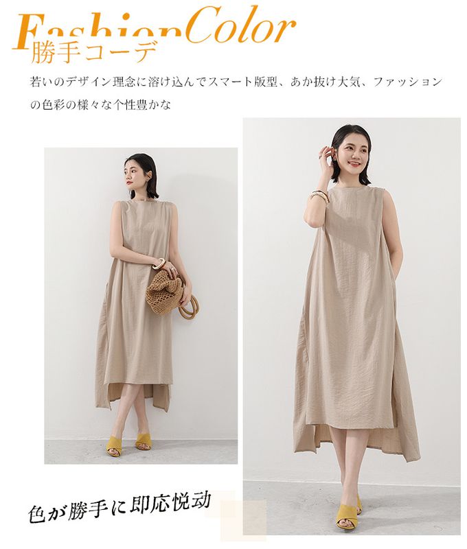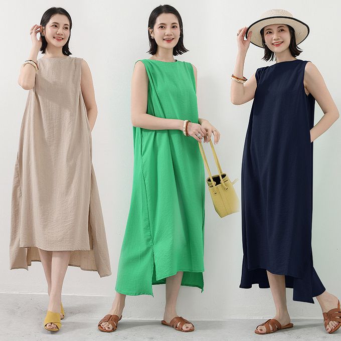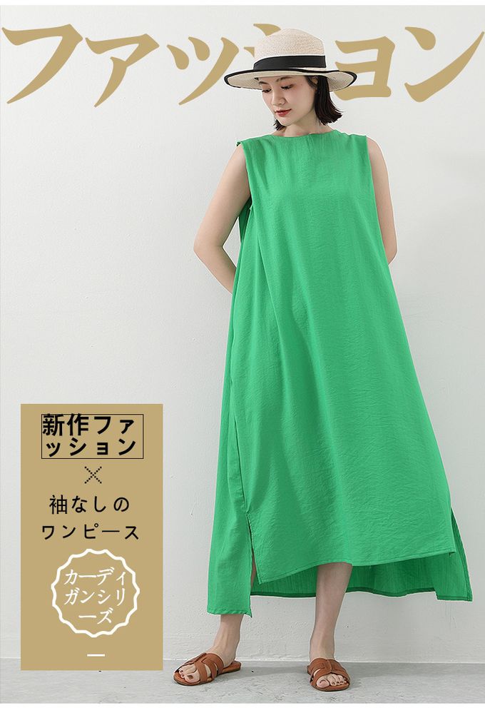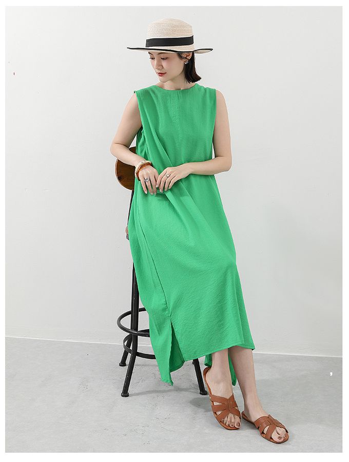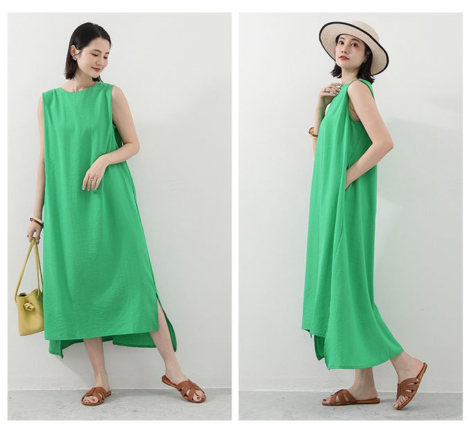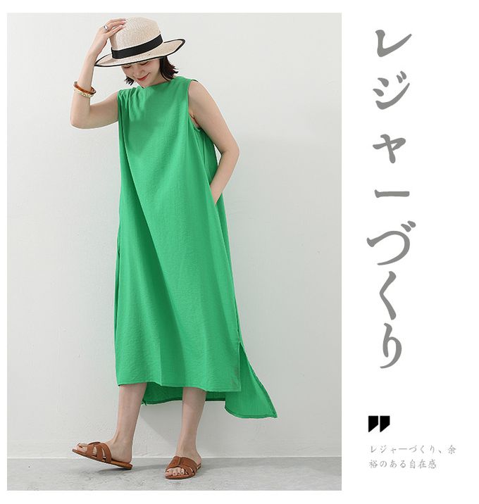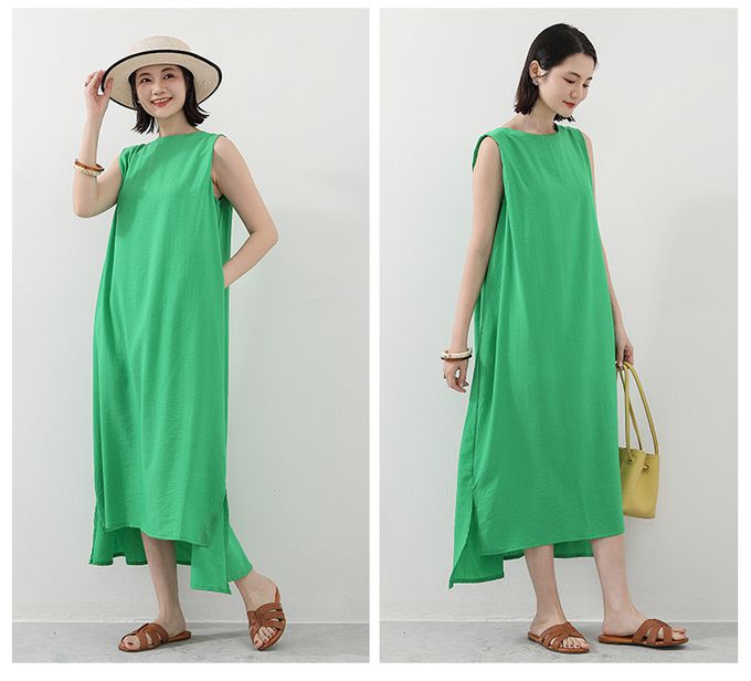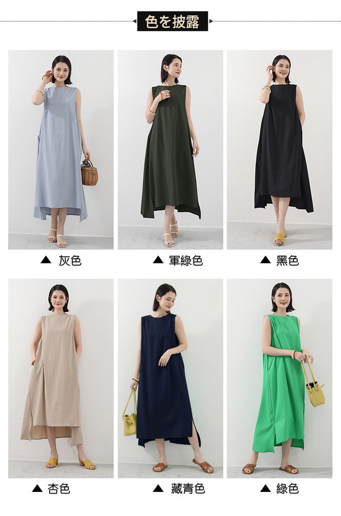 日系極簡風圓領百搭長洋裝-綠色 (F)
