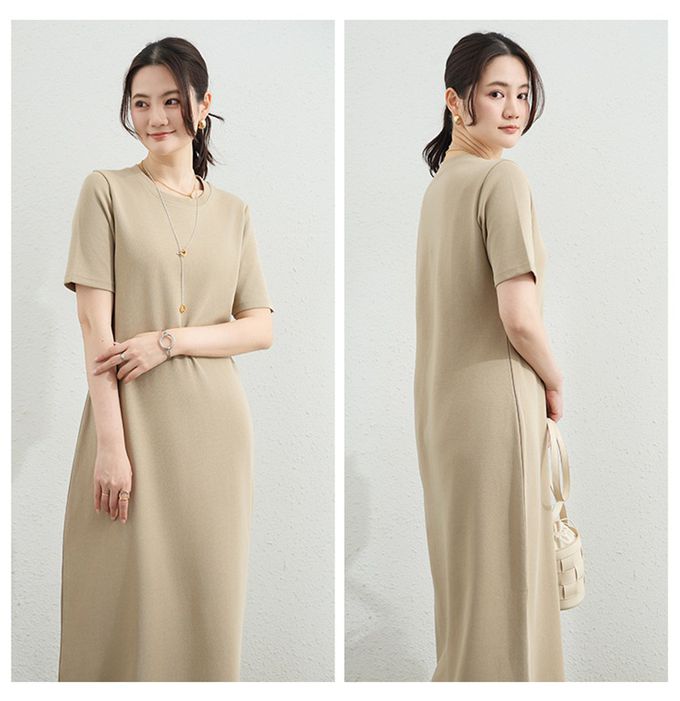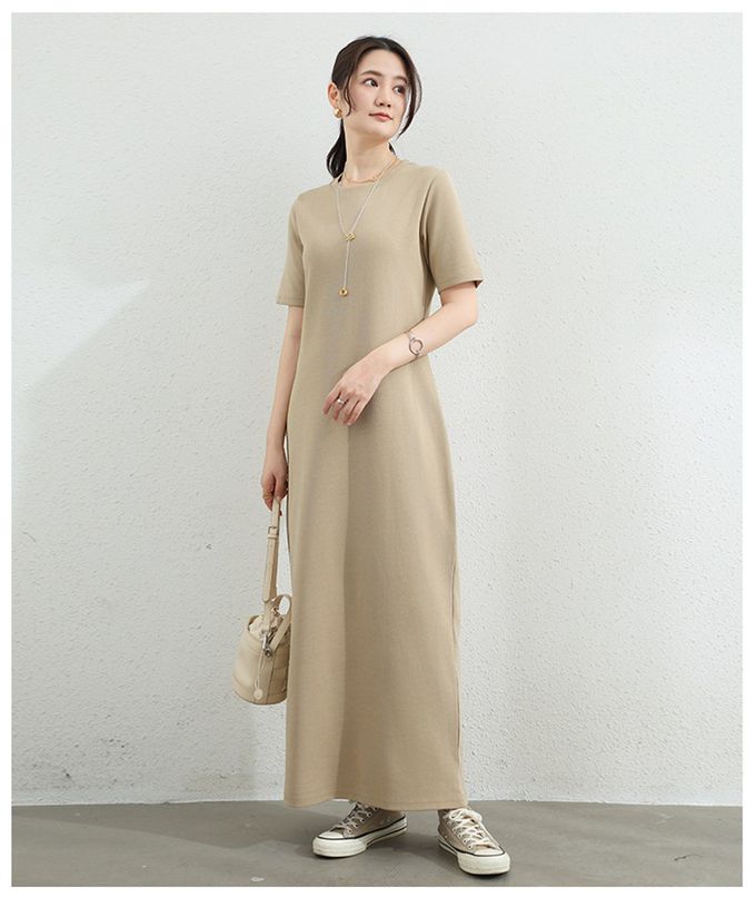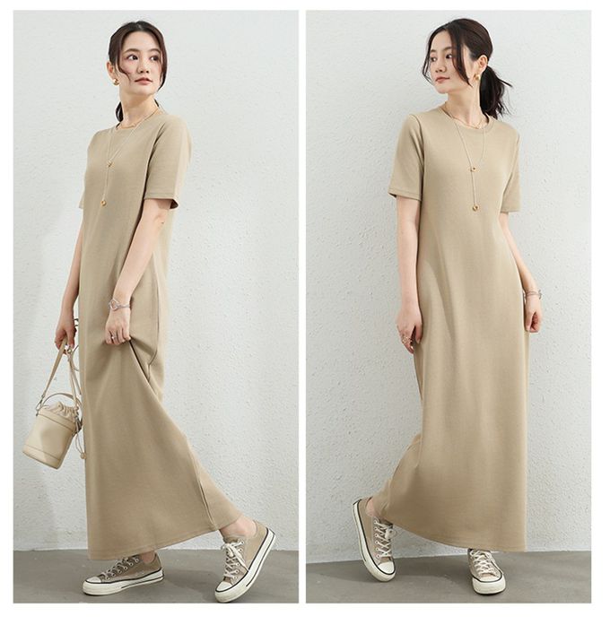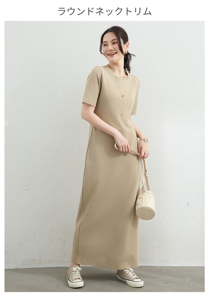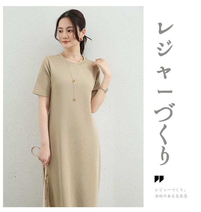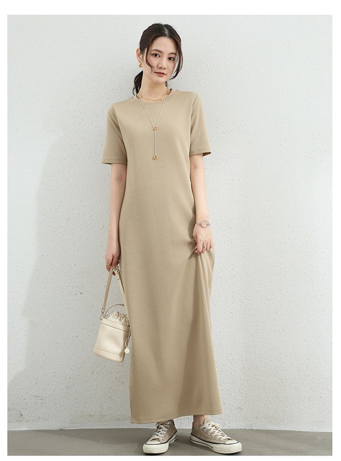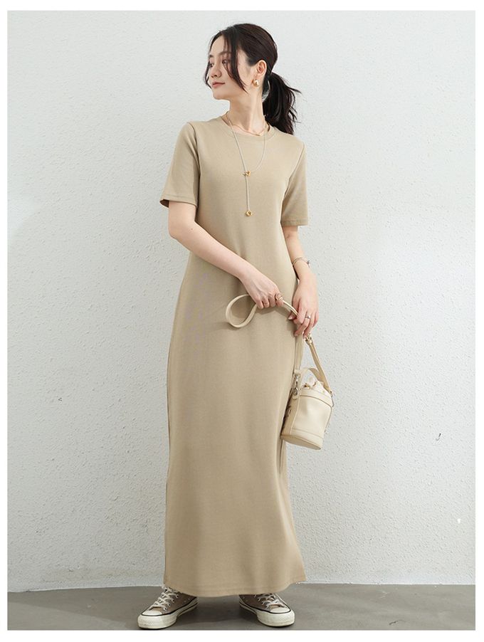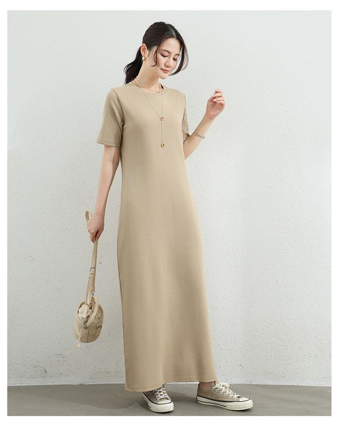 Yukié - 百搭圓領修身長洋裝-短袖款-黑色
