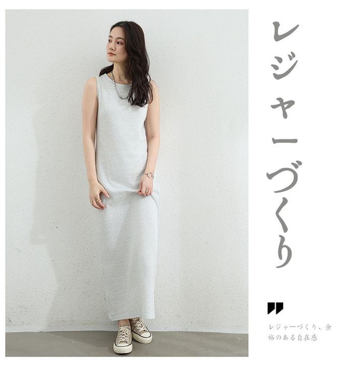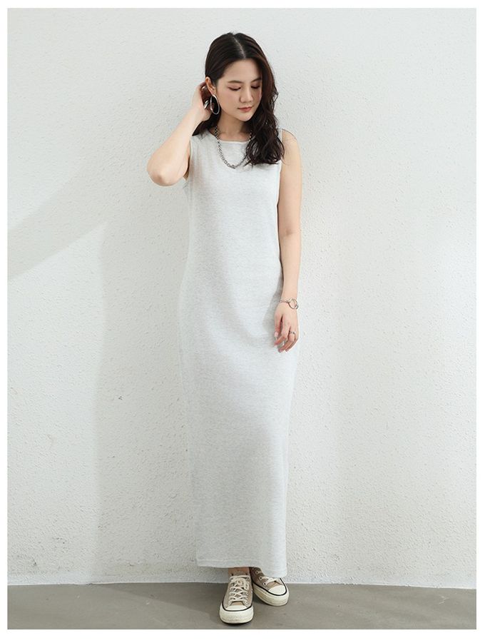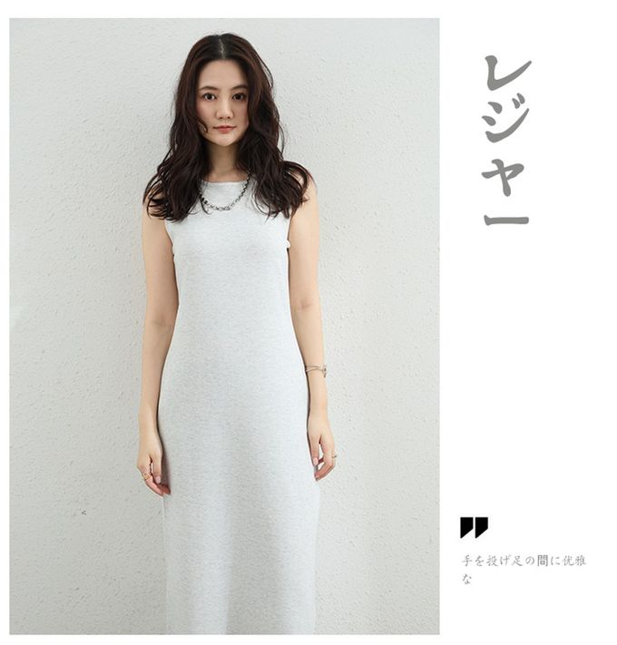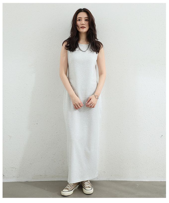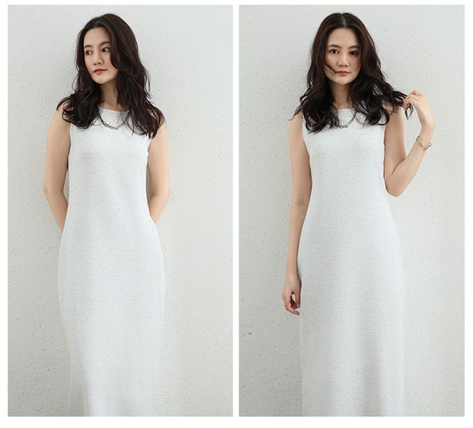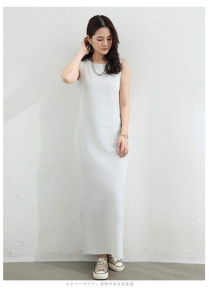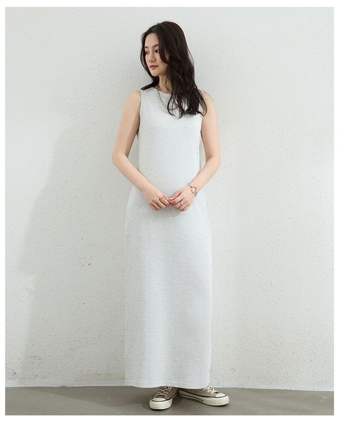 百搭圓領修身長洋裝-無袖款-淺灰