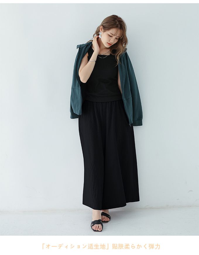 腰鬆緊百搭舒適寬褲-黑色