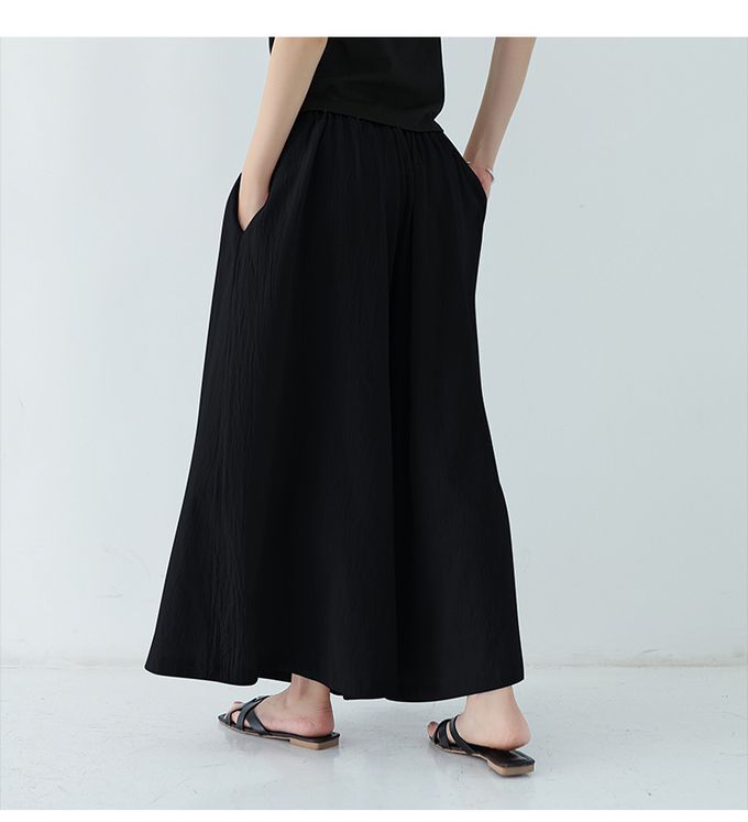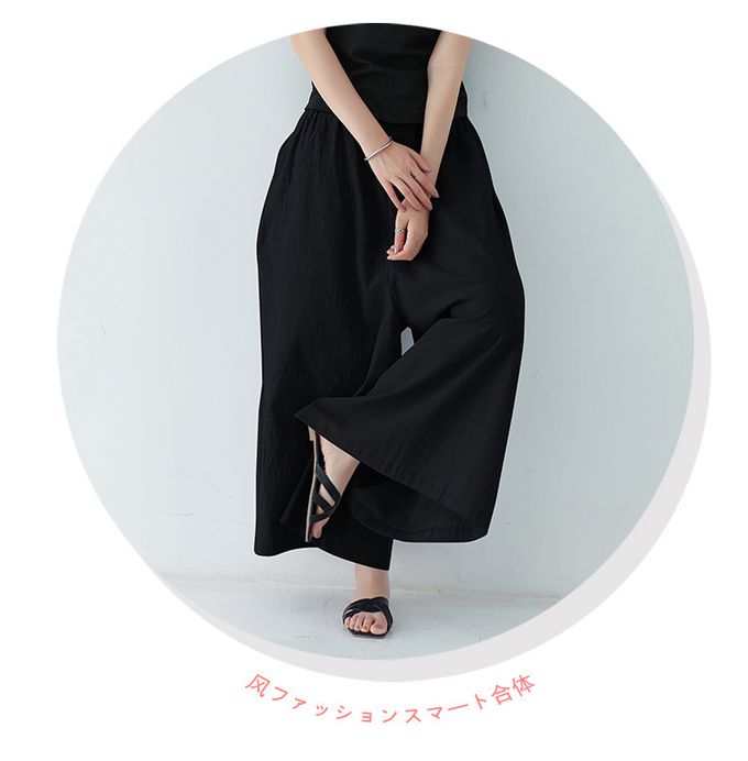 Yukié - 腰鬆緊百搭舒適寬褲-黑色