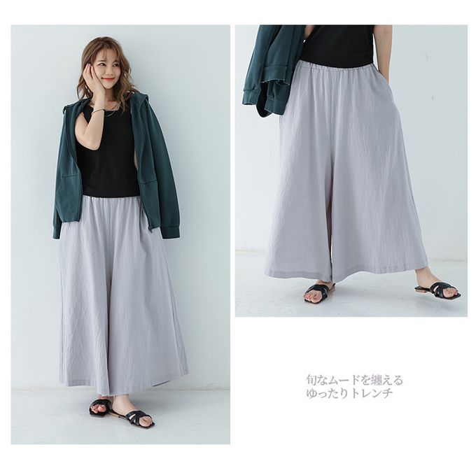 腰鬆緊百搭舒適寬褲-淺灰色