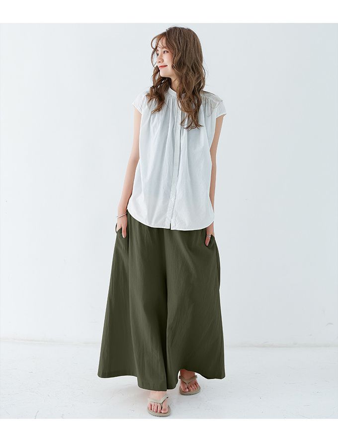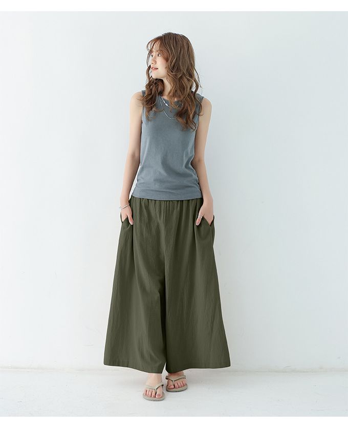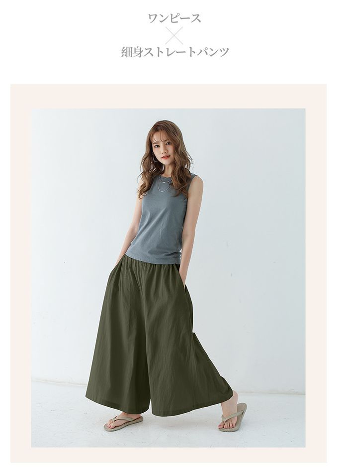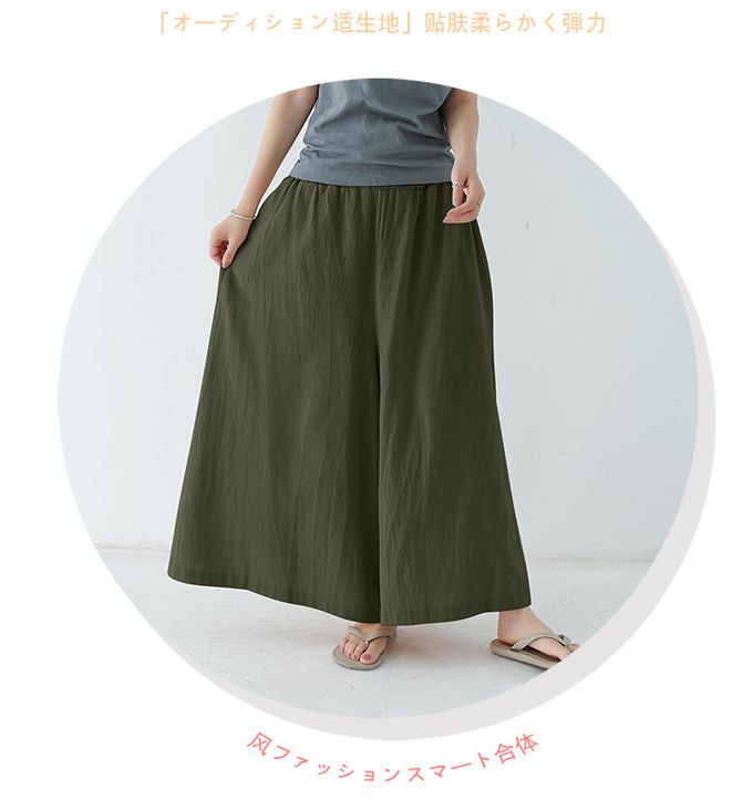 Yukié - 腰鬆緊百搭舒適寬褲-藏青色