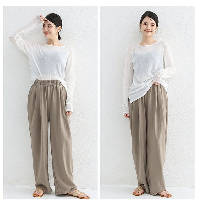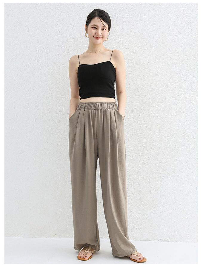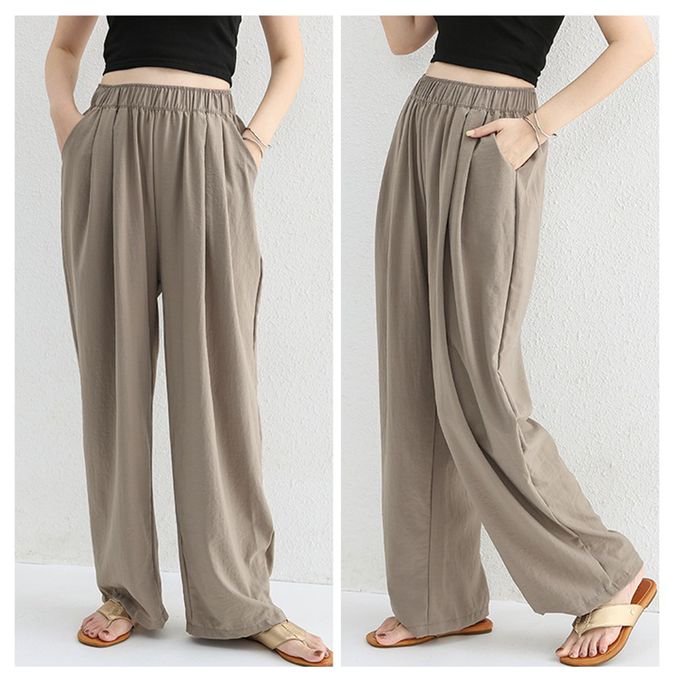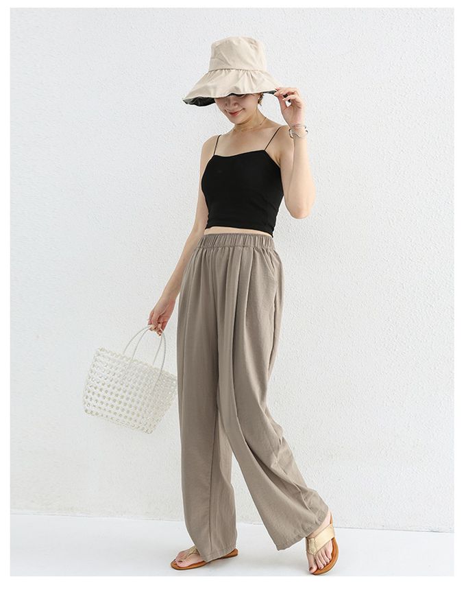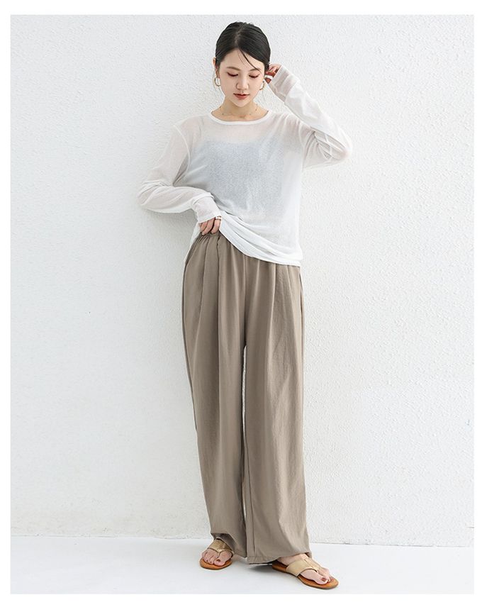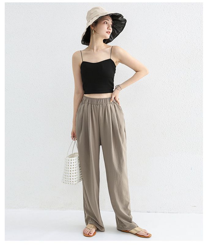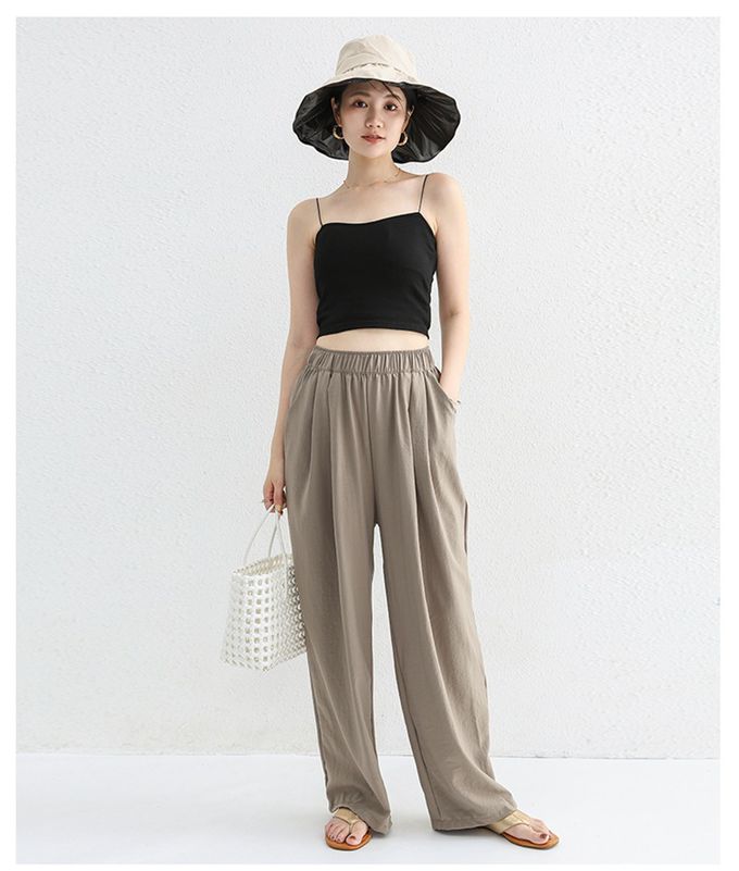 品名:高腰修身微寬鬆落地長褲