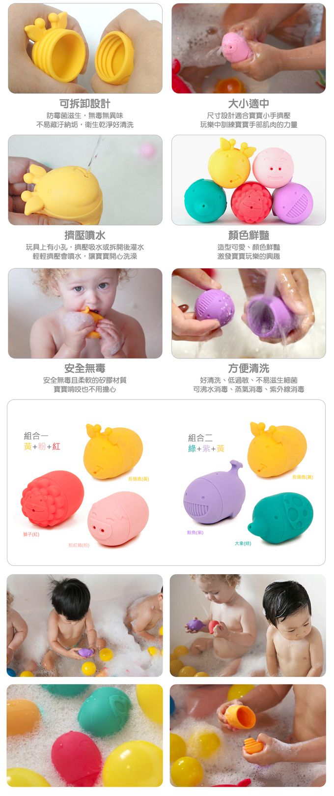 🔹可拆卸式清潔設計,不同於一般洗澡玩具由於密封導致發霉發臭等等不衛生的問題,可用高溫消毒後放在通風處可自然風乾。