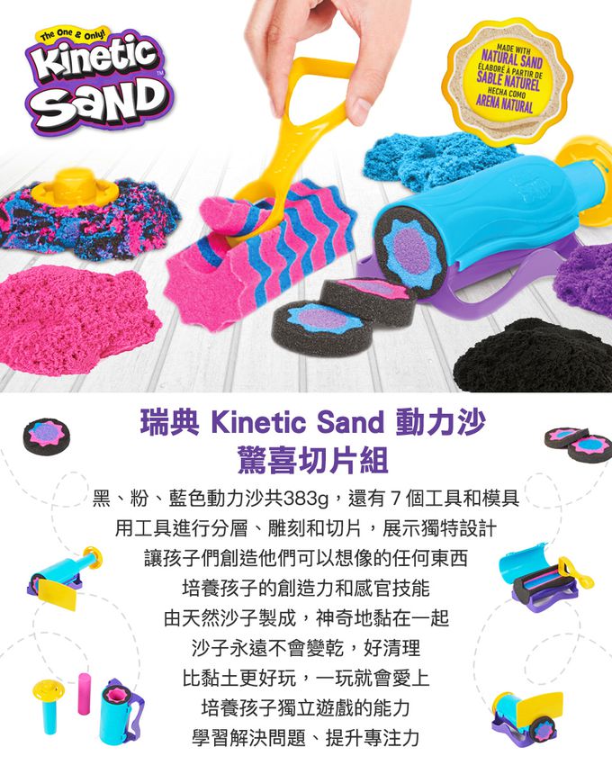 神奇的 Kinetic Sand 動力沙~100%安全無毒,通過台灣及歐美國家安全玩具認證。好清理、柔軟、延展性佳、易塑形,一玩就上癮,千變萬化任你玩,讓愛玩沙的小孩,安全的在家享受玩沙的樂趣!