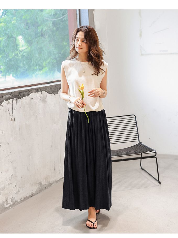 莫代爾舒適修身百摺長裙-黑色 (F)