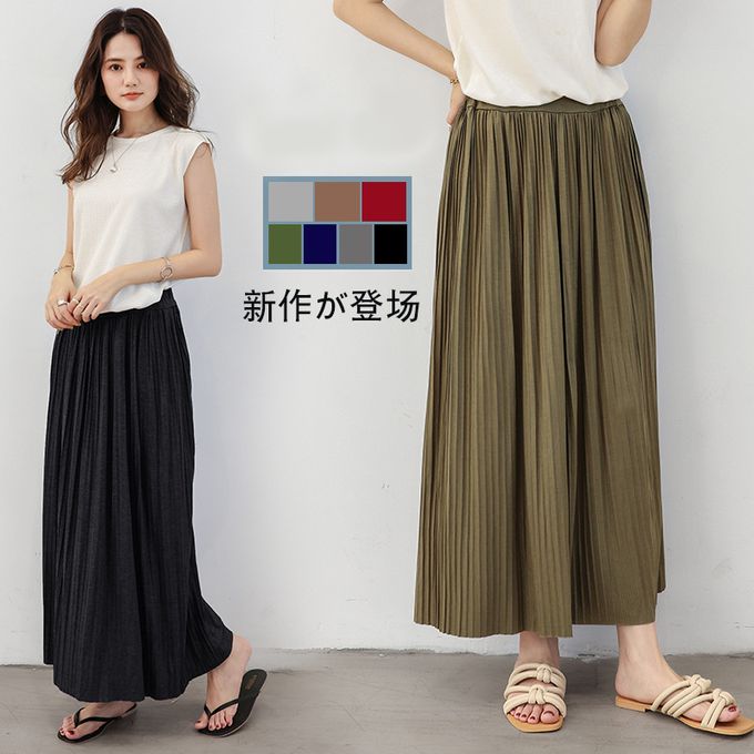 Yukié - 莫代爾舒適修身百摺長裙-軍綠色 (F)