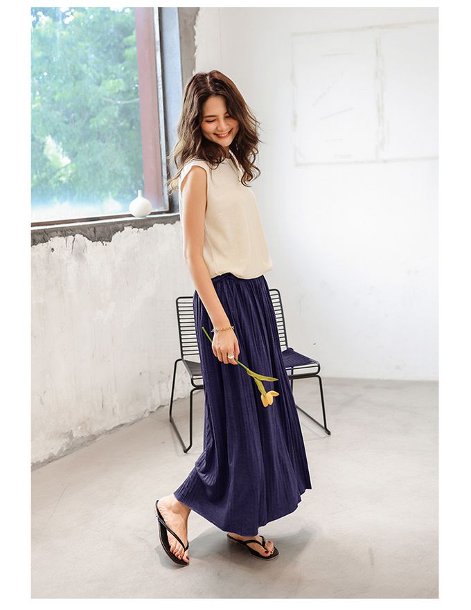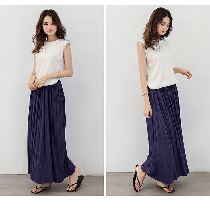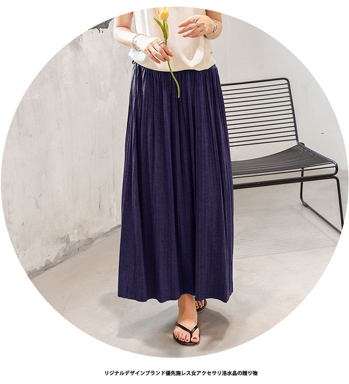 Yukié - 莫代爾舒適修身百摺長裙-藏青色 (F)