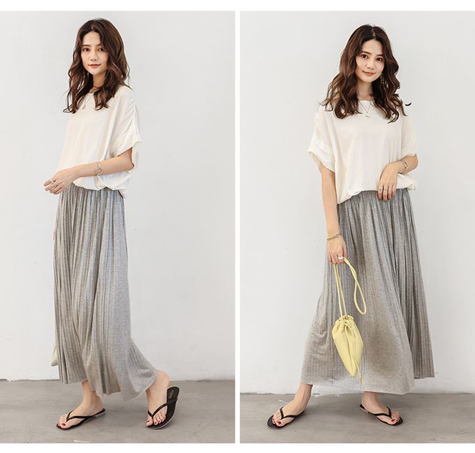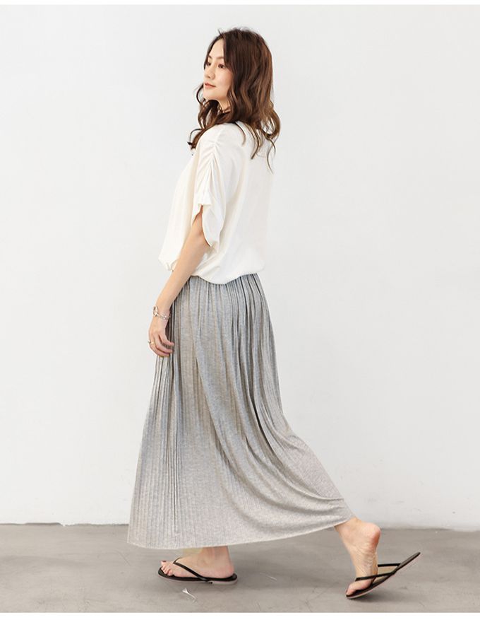 莫代爾舒適修身百摺長裙-淺灰色 (F)