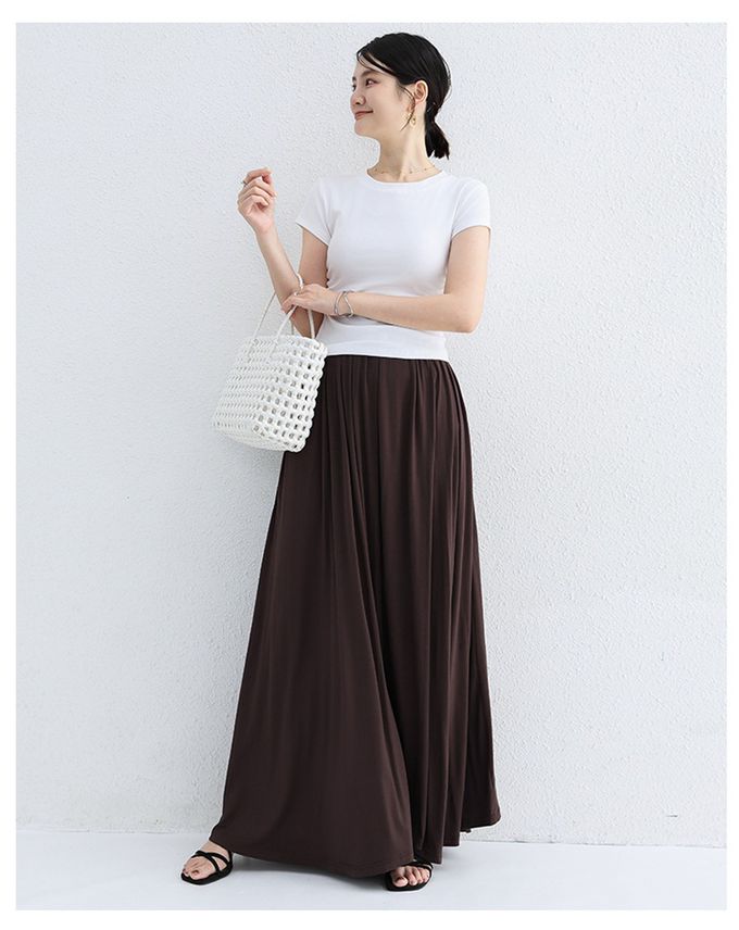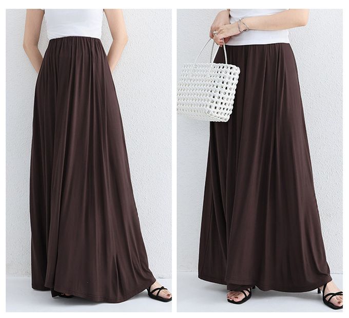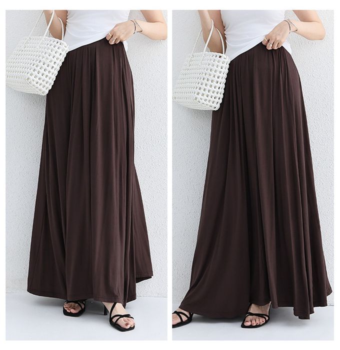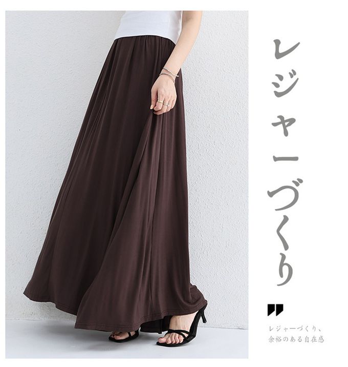 Yukié - 莫代爾舒適大裙襬修身長裙-咖啡色
