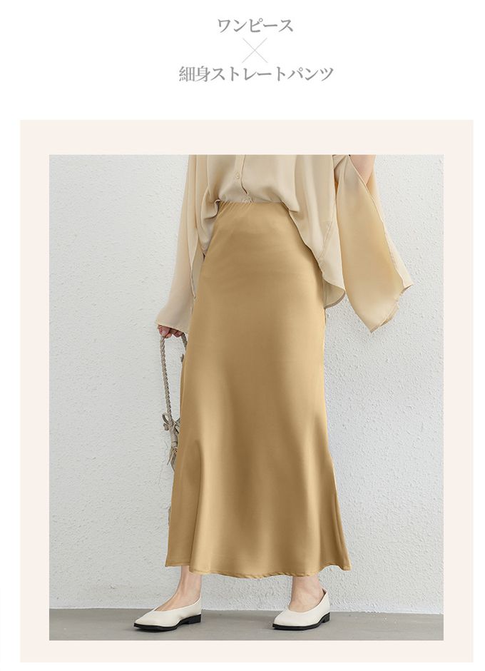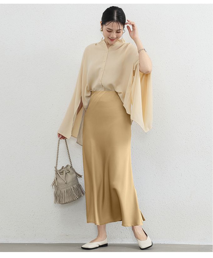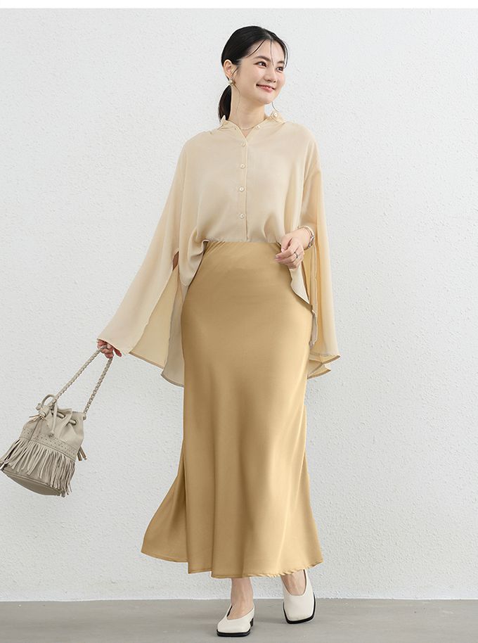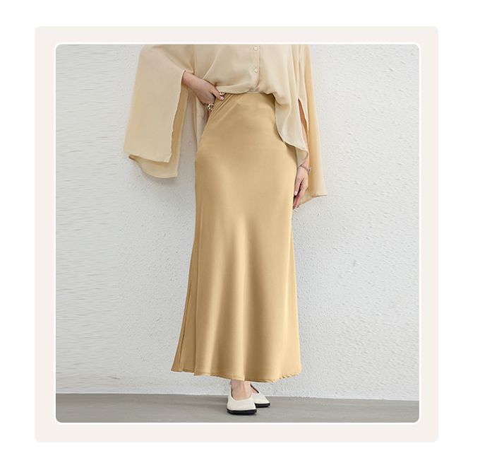 Yukié - 優雅緞面高腰魚尾裙-黃色