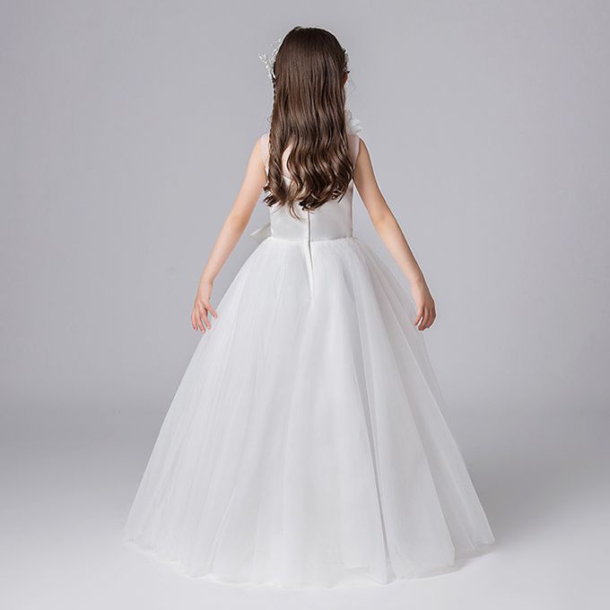 甜美氣質高級婚紗貢緞大蝴蝶結無袖長禮服-白色 (120 cm)