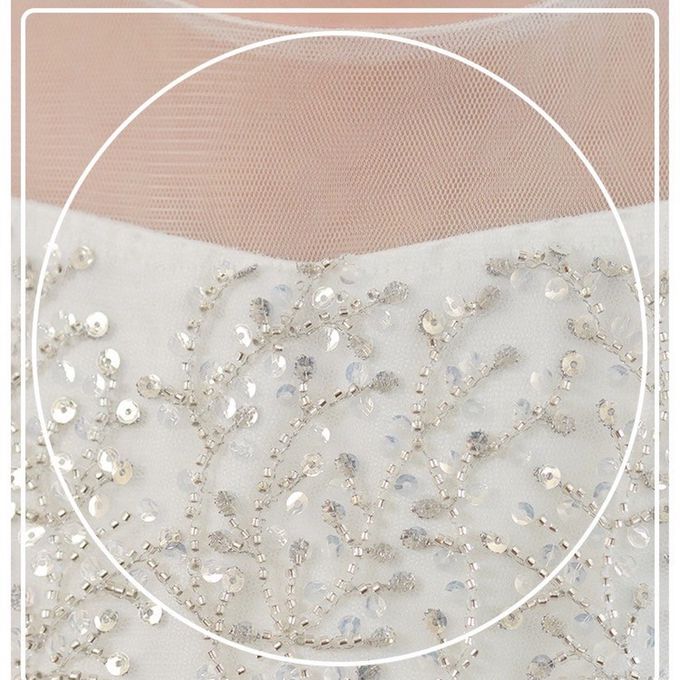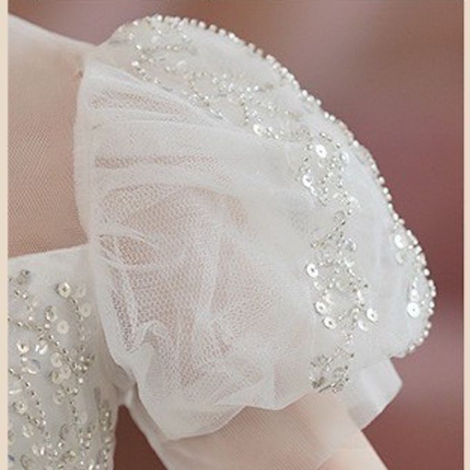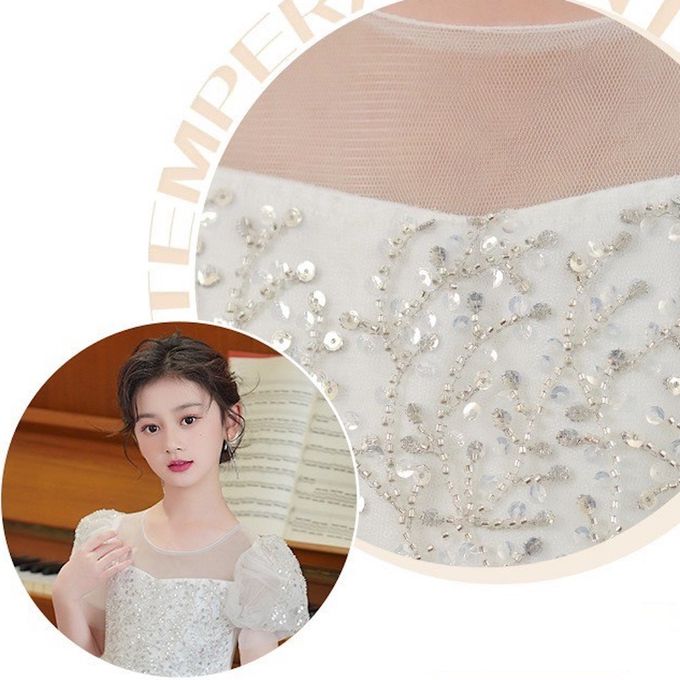 畢業典禮氣質柔美刺繡珠片公主袖長禮服-送皇冠髮箍-款式隨機-白色