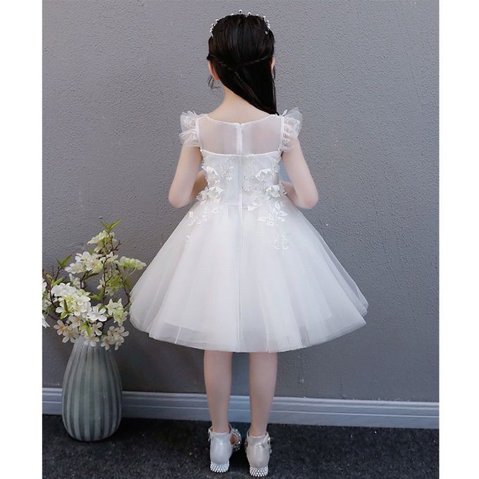 畢業典禮立體繡花蓬蓬白紗小禮服 (送小皇冠髮箍)-白色