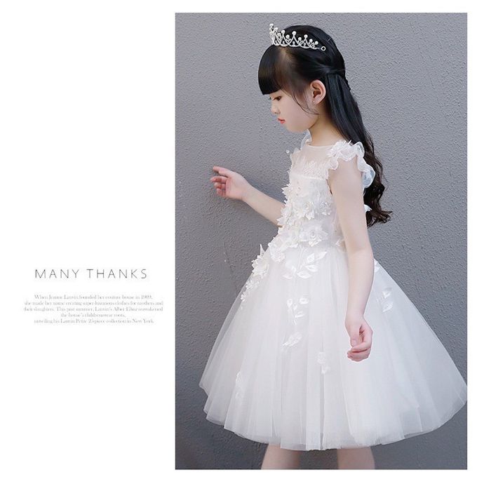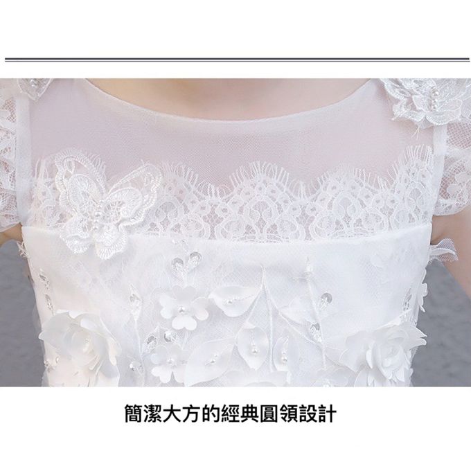 品名:畢業典禮立體繡花蓬蓬白紗小禮服 (送小皇冠髮箍)