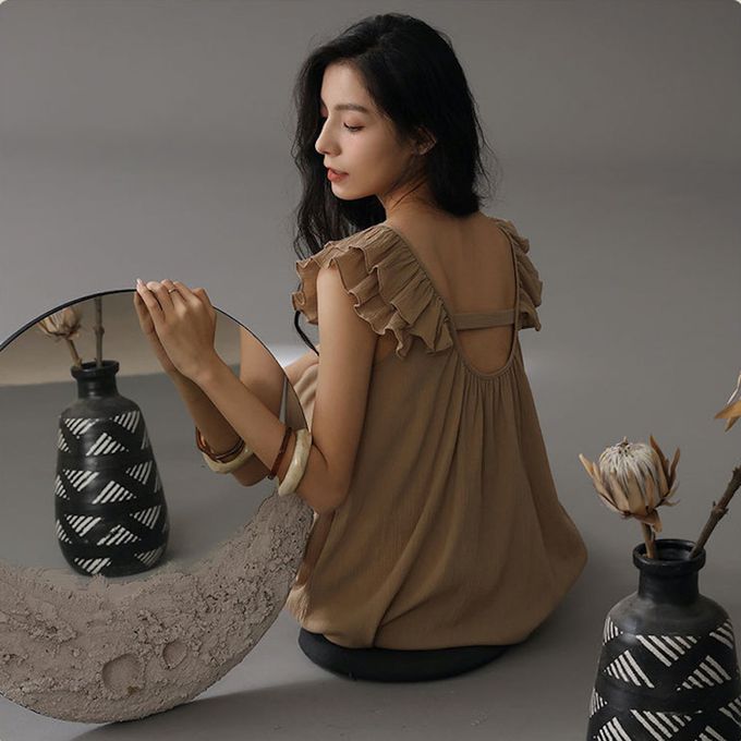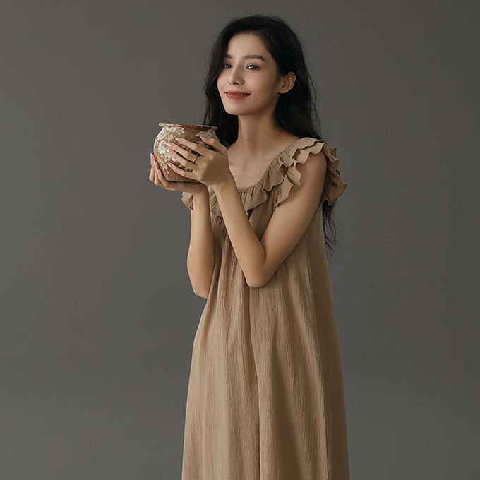 品名:沉寂極簡風全棉双層皺紗荷葉袖洋裝居家服