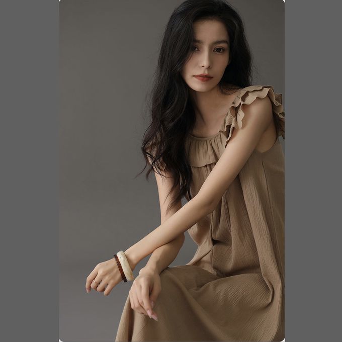 沉寂極簡風全棉双層皺紗荷葉袖洋裝