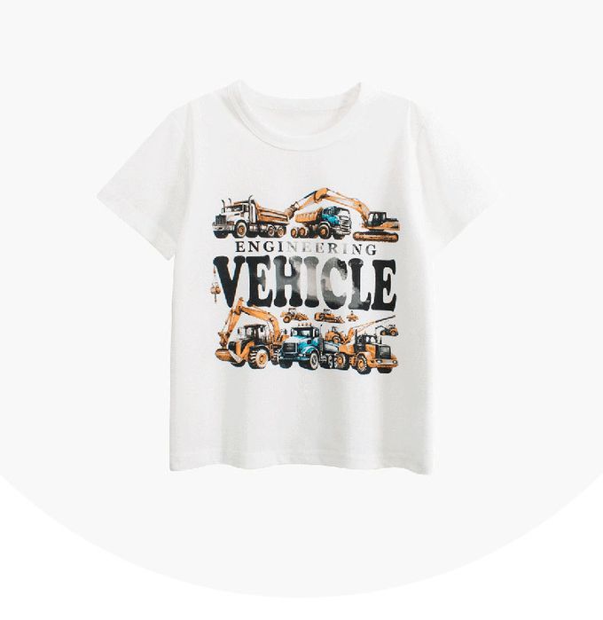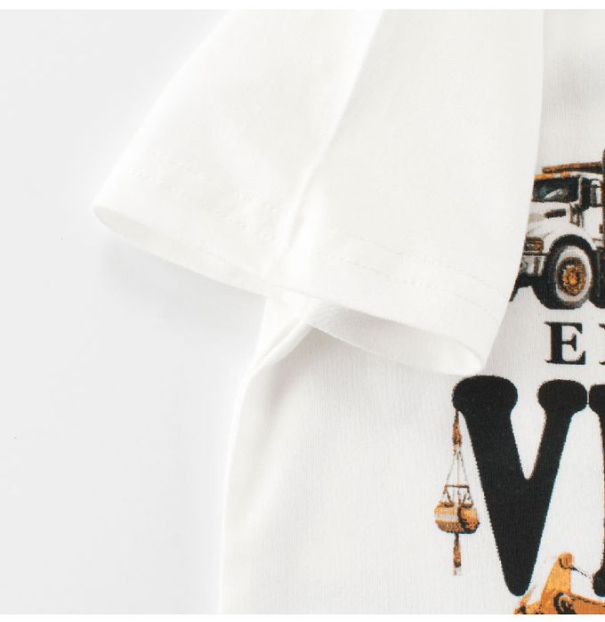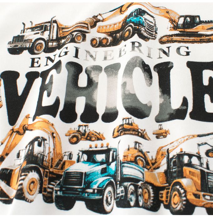 純棉短袖上衣-工程車車-米白