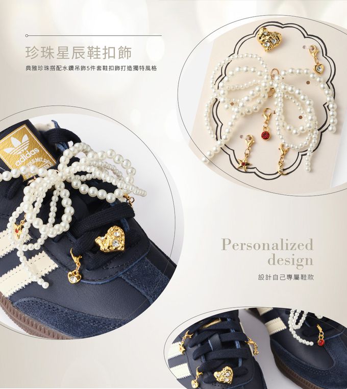 品名:【neverhaveiever】珍珠星辰鞋金色扣飾-星星月亮閃紅寶石
