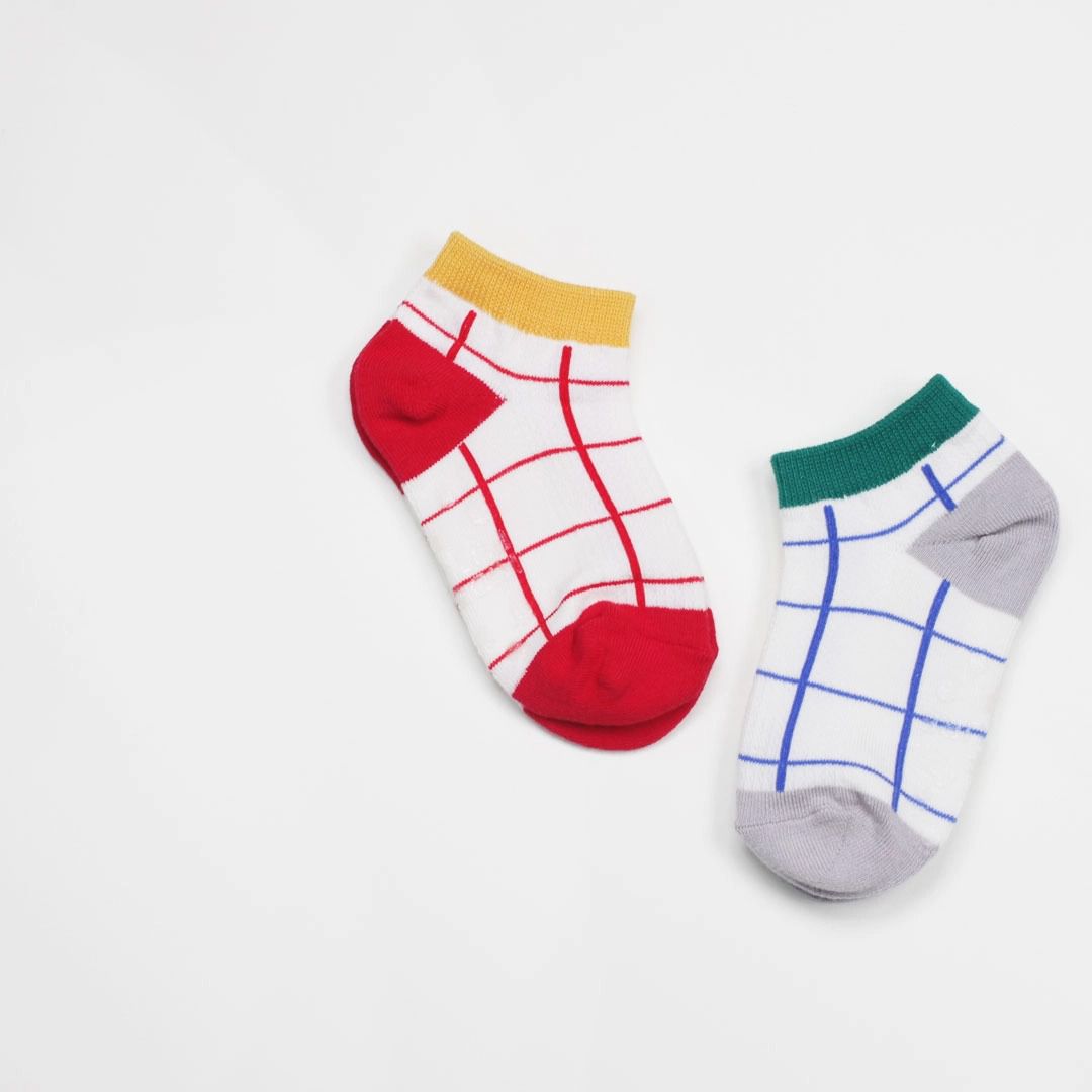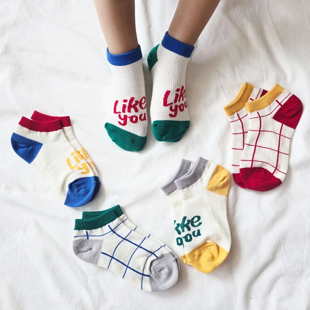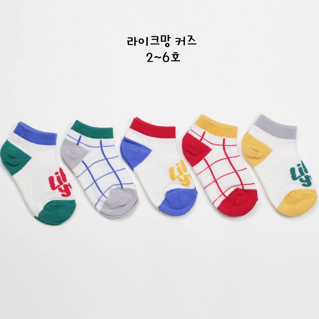 韓國連線 - (五入組)韓製兒童短襪-格紋X文字