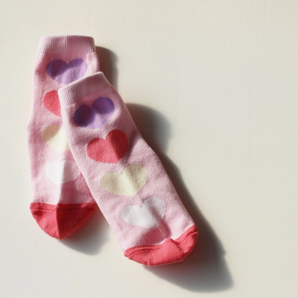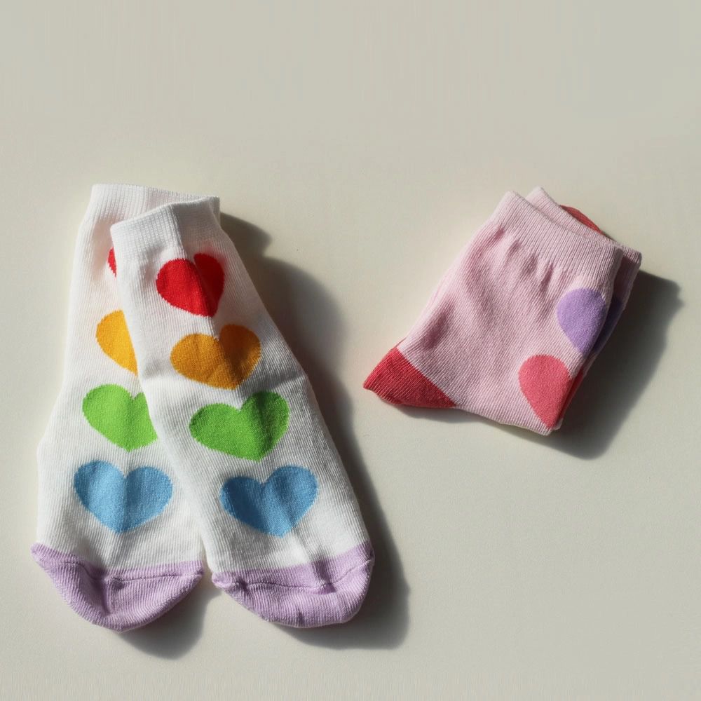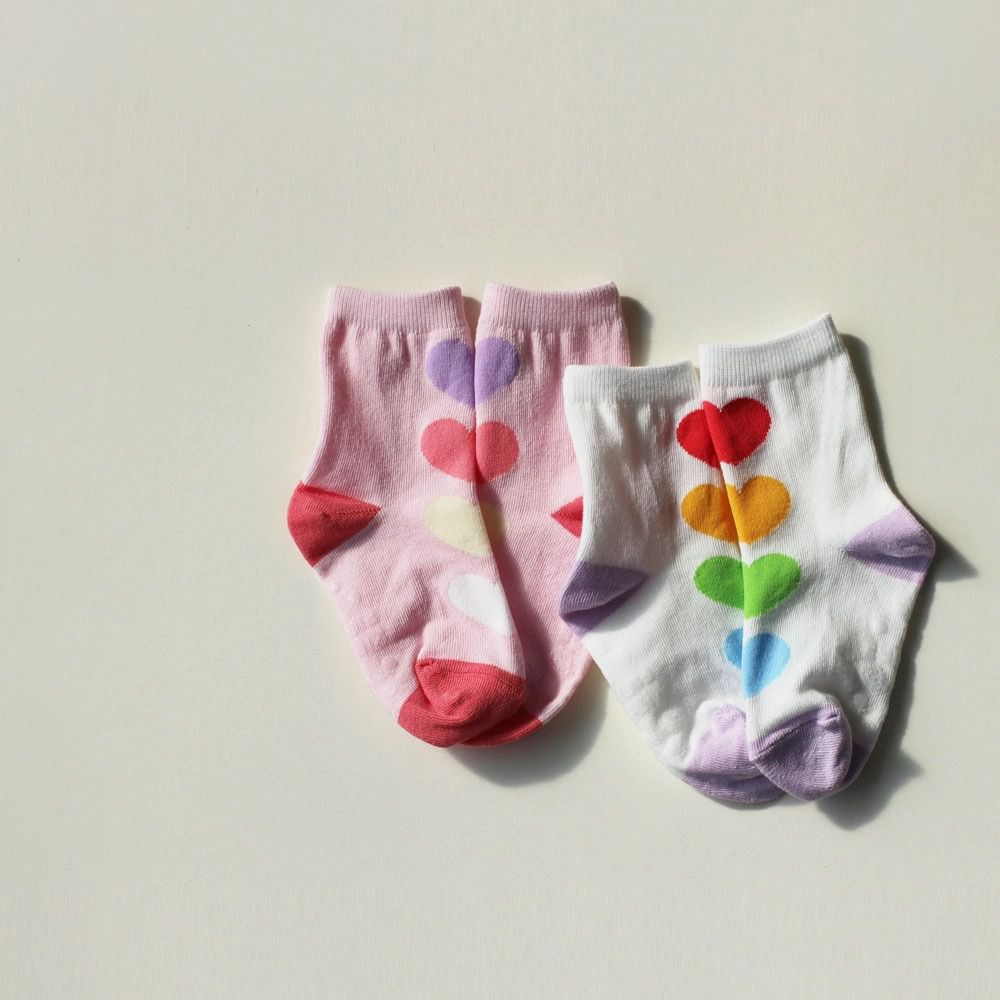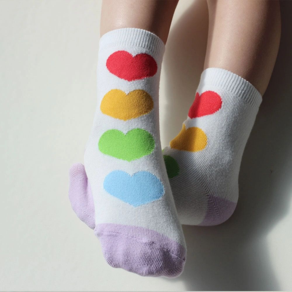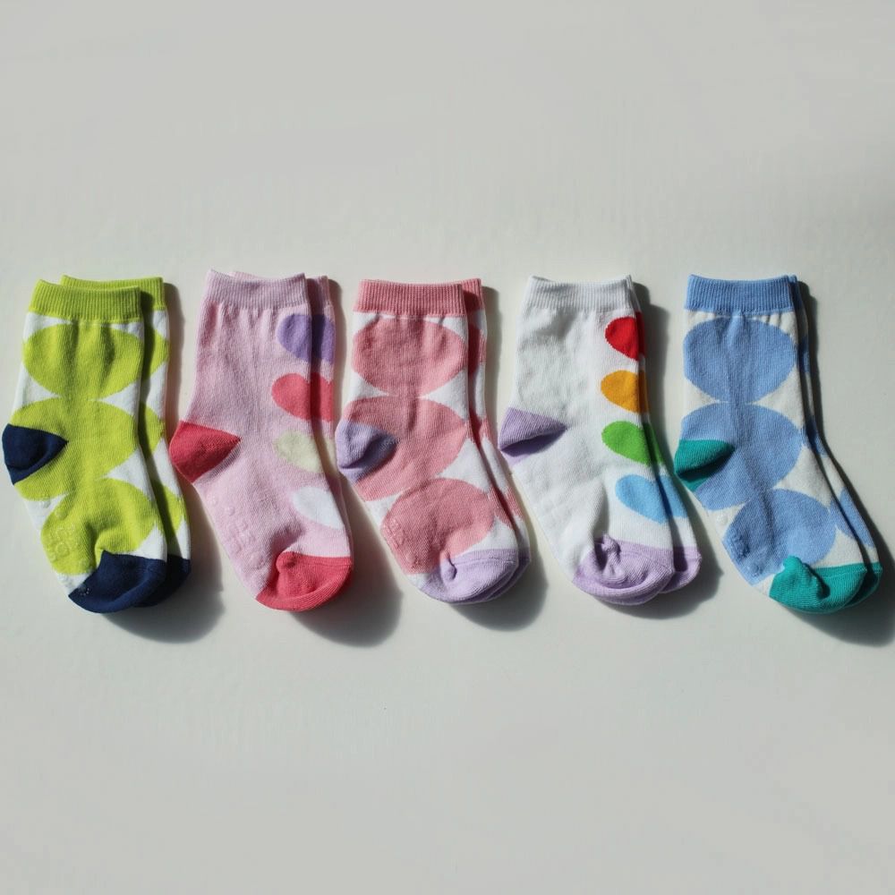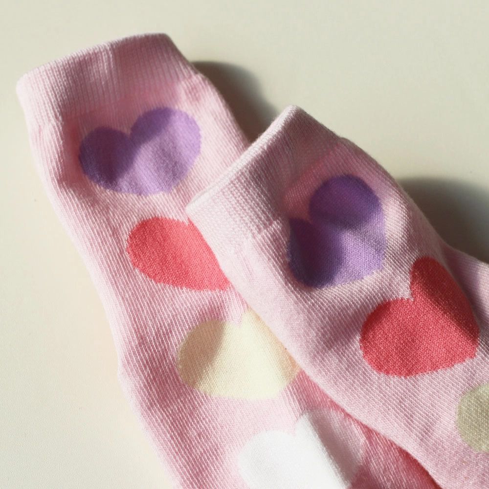 韓國連線 - (五入組)韓製兒童中筒襪-大圓點X彩色愛心