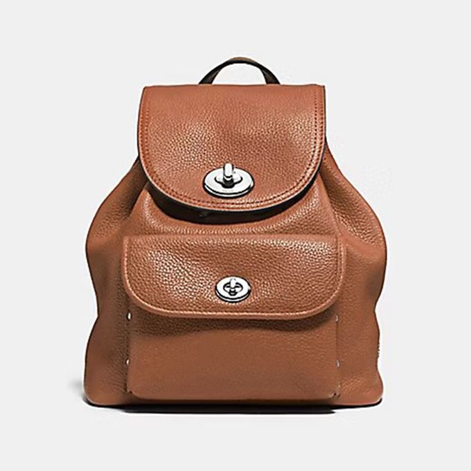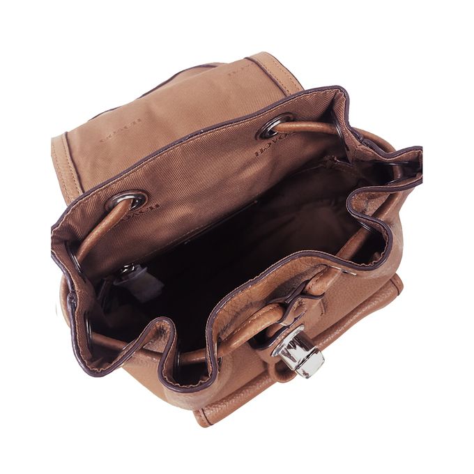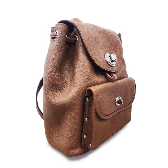 鵝卵石紋皮革前口袋後背包 (駝色)