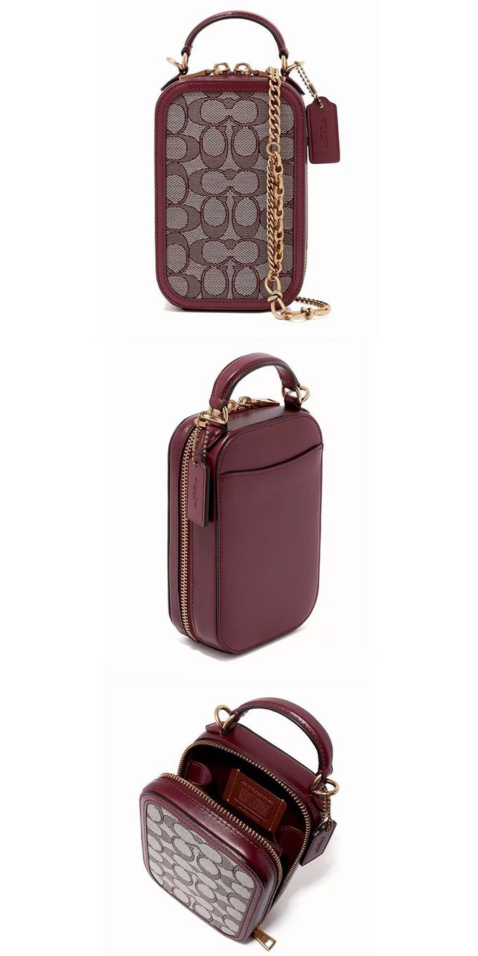 滿版LOGO拼接皮革手機鍊包 (酒紅)
