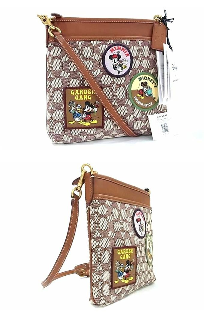 滿版LOGO迪士尼聯名斜背方包 (米奇緹花)