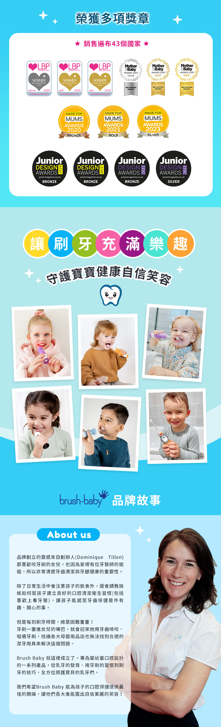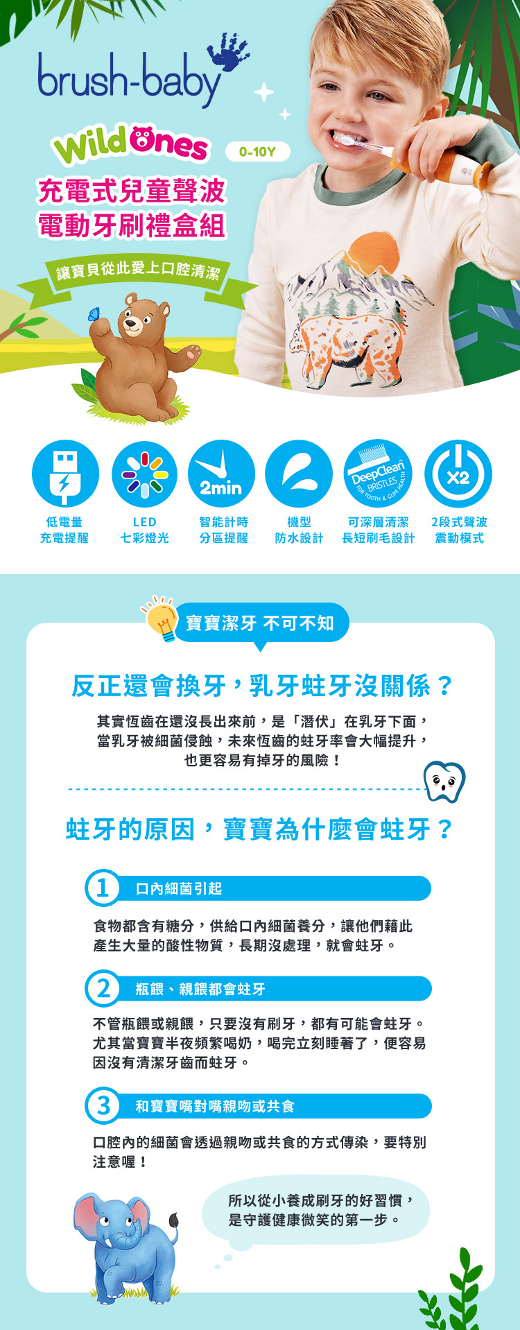 商品:Brush Baby WildOnes 充電式兒童聲波電動牙刷禮盒組