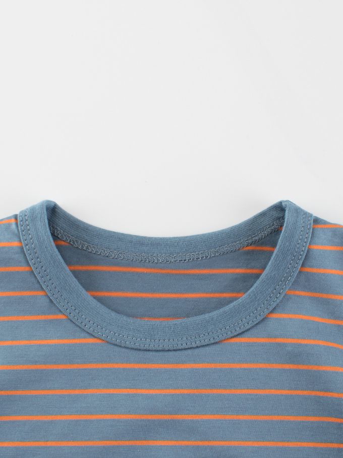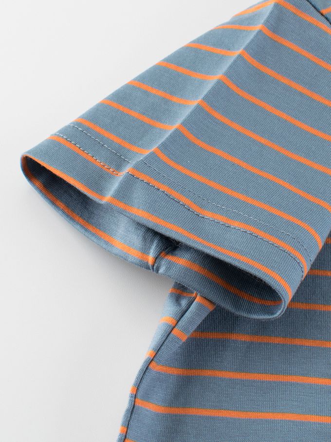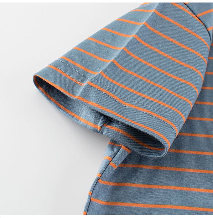 27KIDS - 純棉短袖上衣-藍色笑笑獅-灰綠色