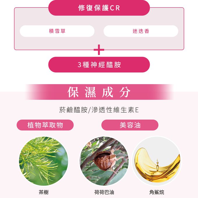 注意事項:肌膚敏感者,使用前請先做肌膚敏感性測試。 當皮膚有傷口或濕疹等異常情況時,請勿使用。 如使用後皮膚發生 異常現象時,請停止使用,並洽詢皮膚科醫師。 如不慎滲入眼中 時,請以大量清水沖洗,如仍感不適,請洽詢皮膚科醫師。 請放置於嬰幼兒不易取得處,且避免放置極高溫、極低溫及陽光照射處。 本產品屬化粧品,不具醫療效能。
