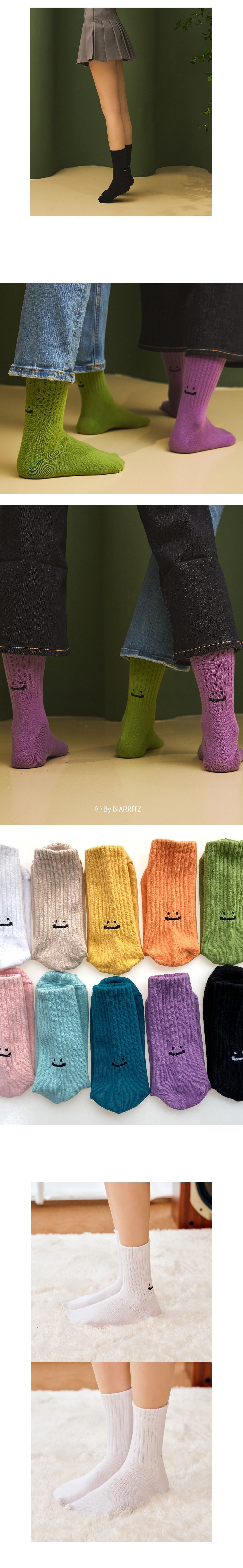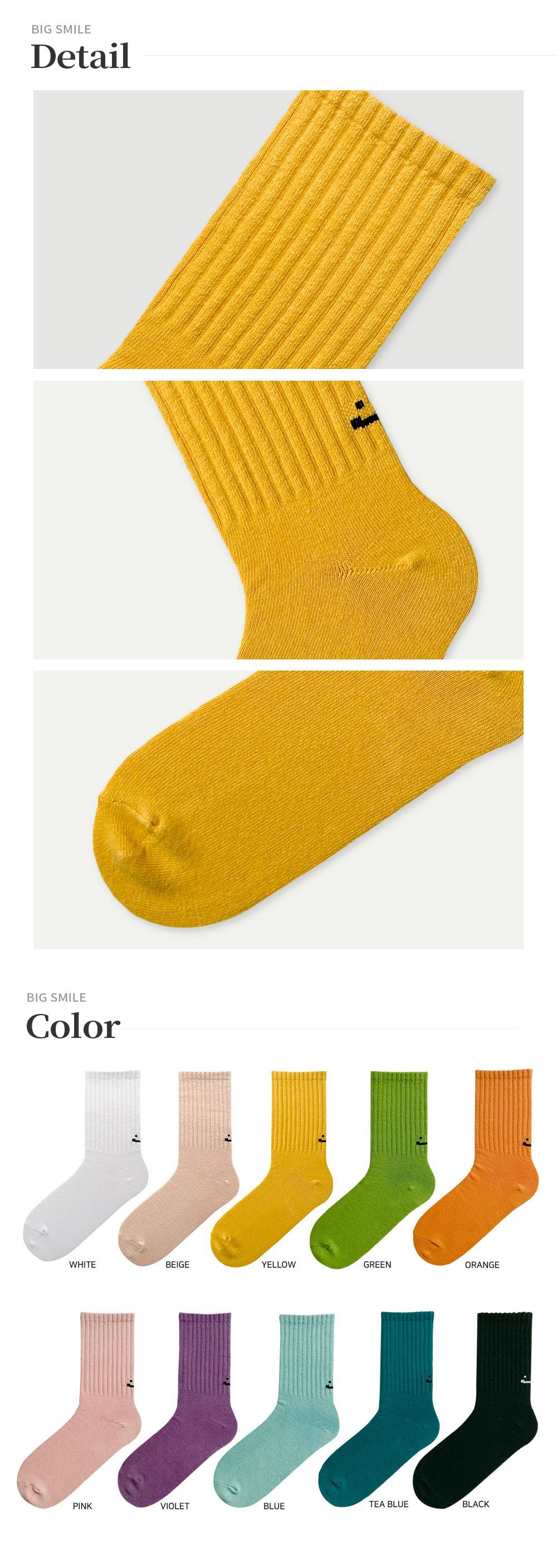 韓國連線 - 韓製彈力好穿中筒襪-笑臉-黃 (Free[230~270mm])-1雙