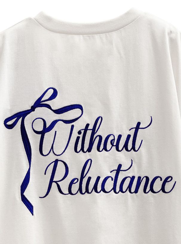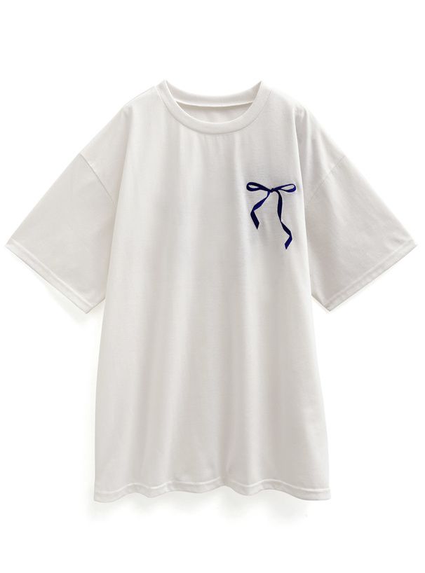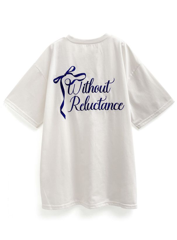 日本 GRL - 背後絲帶印花休閒長版T恤-白 (F)
