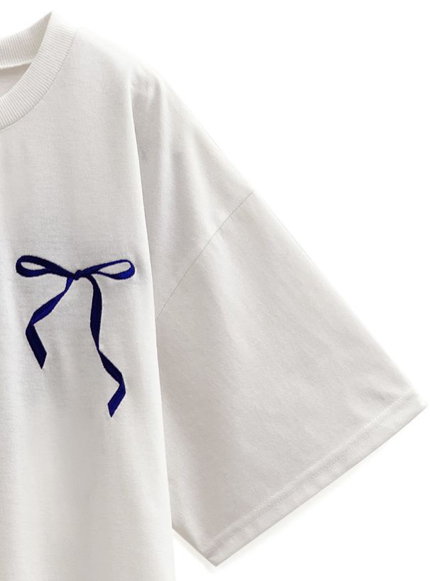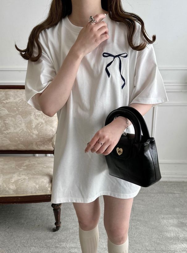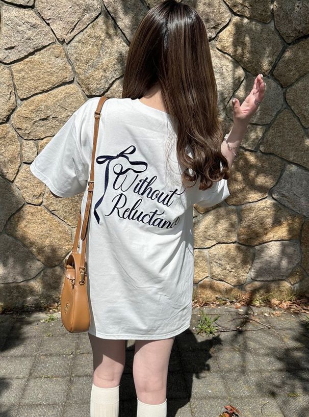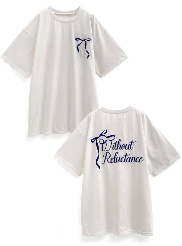 • 品名:背後絲帶印花休閒長版T恤