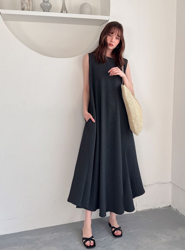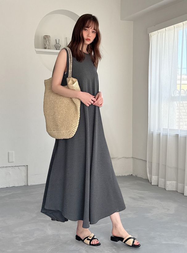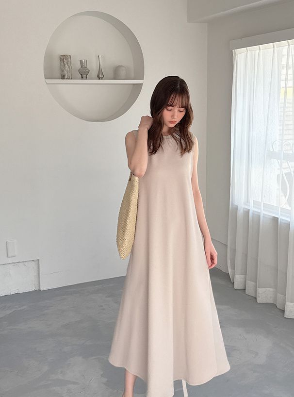 ![日本 GRL - 優雅抓皺泡泡布吊帶裙-米杏]()