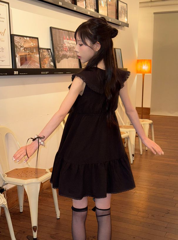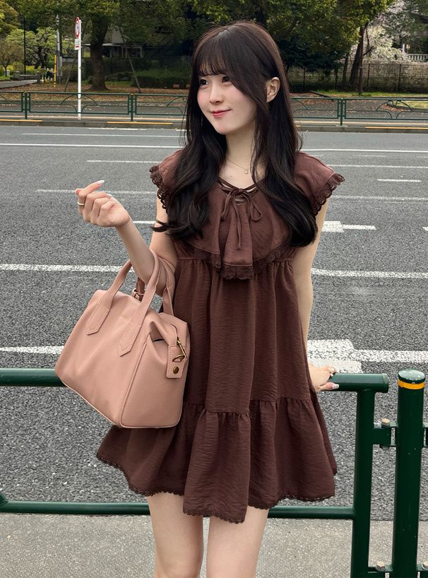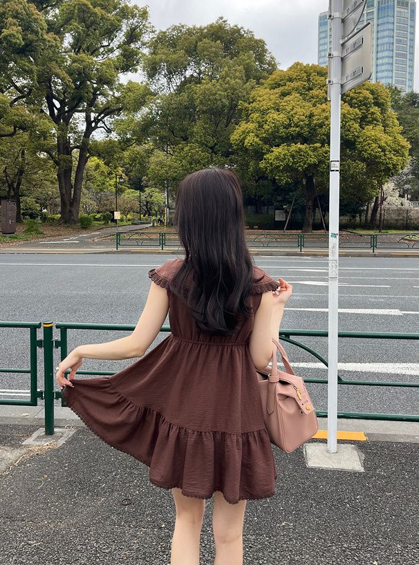 ![日本 GRL - 優雅抓皺泡泡布吊帶裙-米杏]()