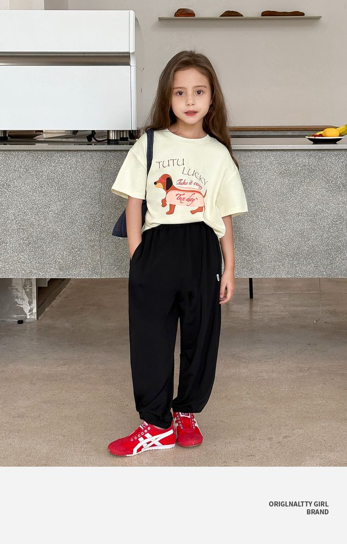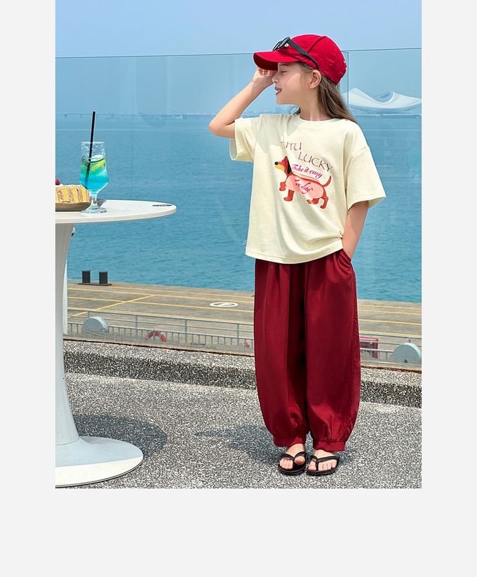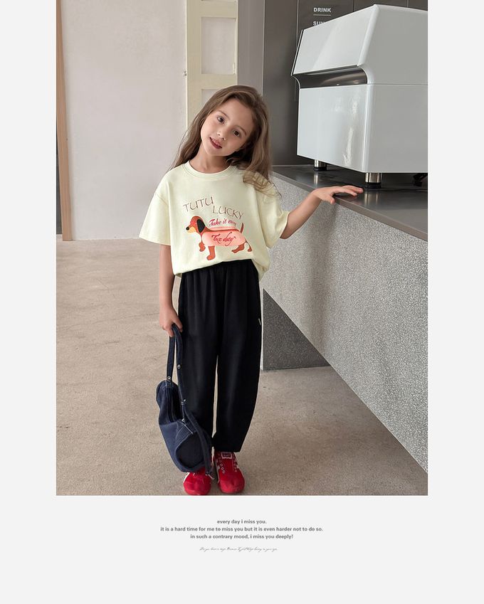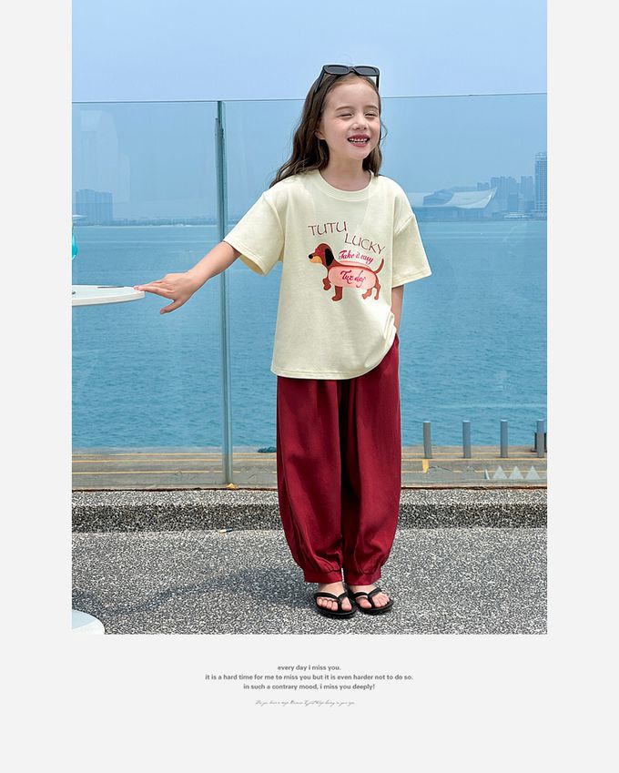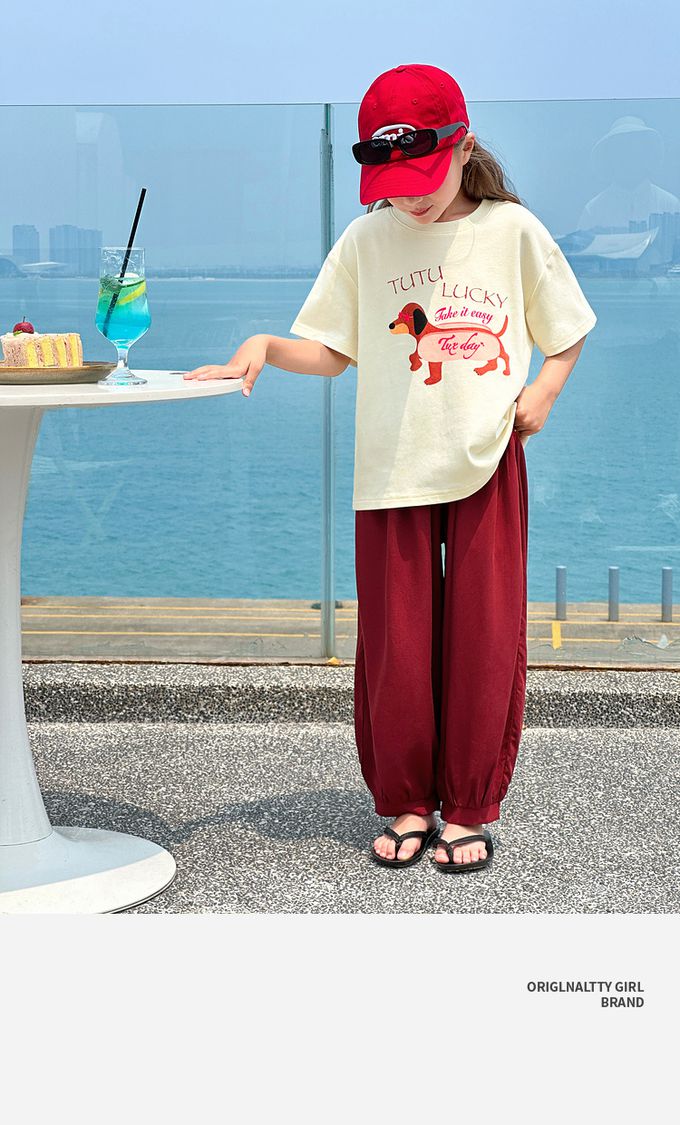 休閒圓領落肩短袖上衣/T恤-童趣萌繪-黃杏色
