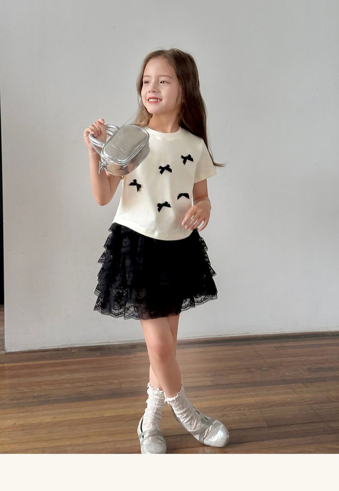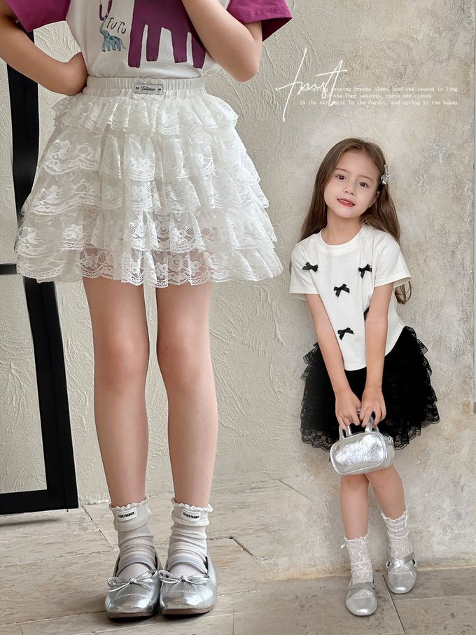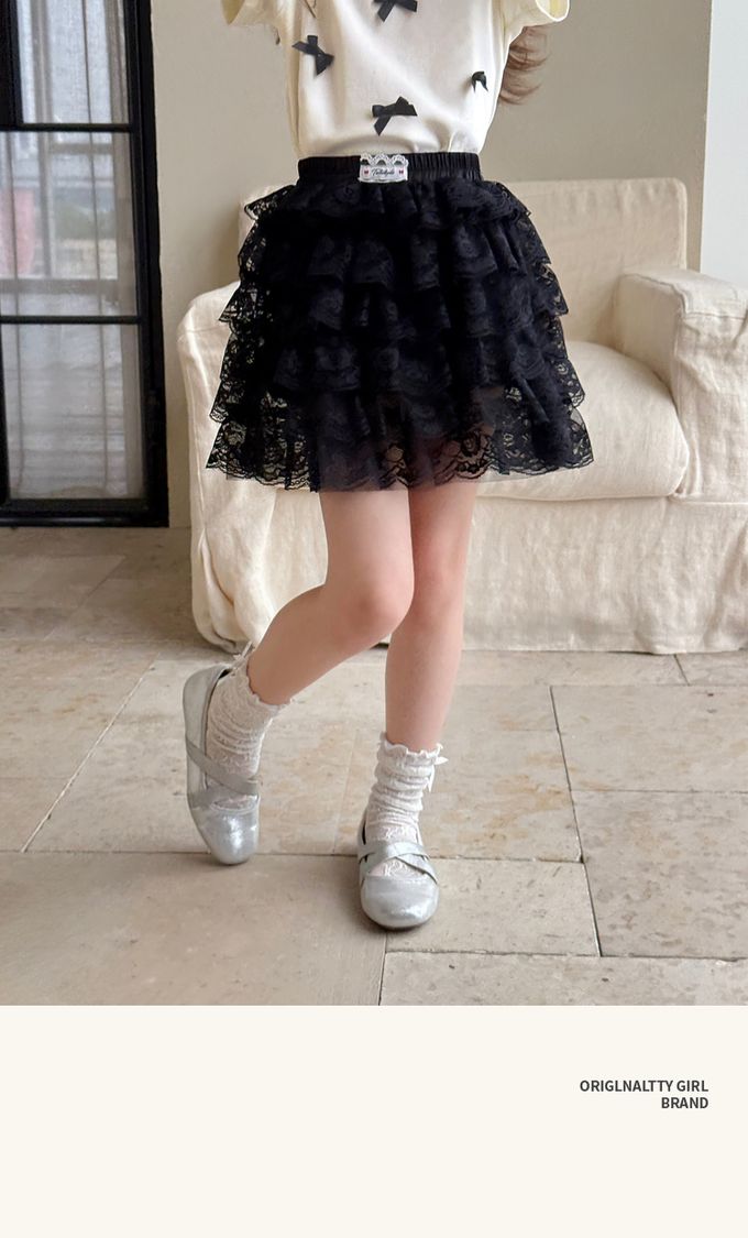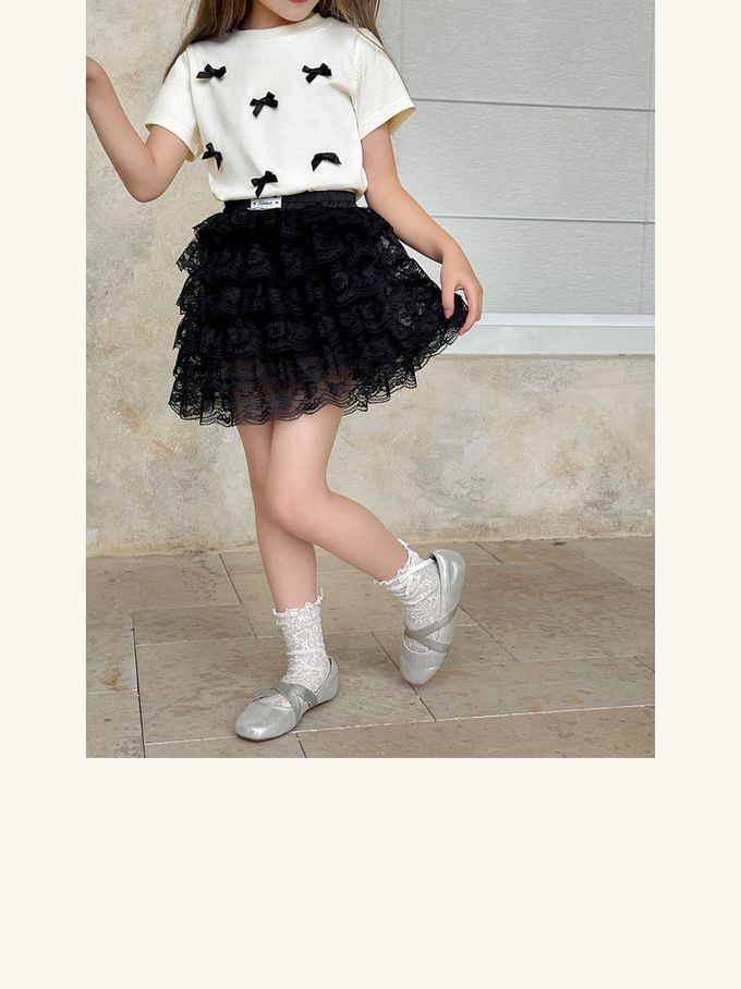 甜心多層次蕾絲蛋糕短裙-純棉內襯-黑色
