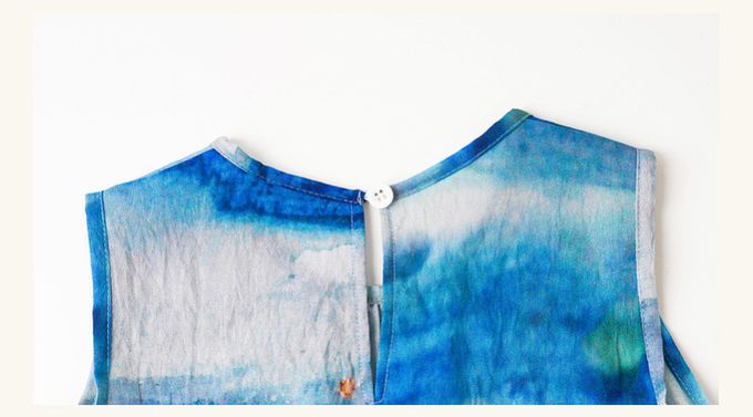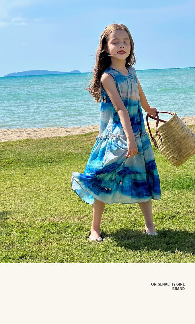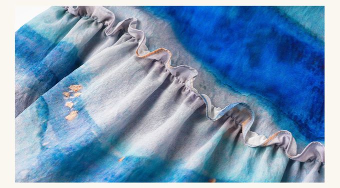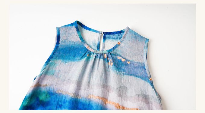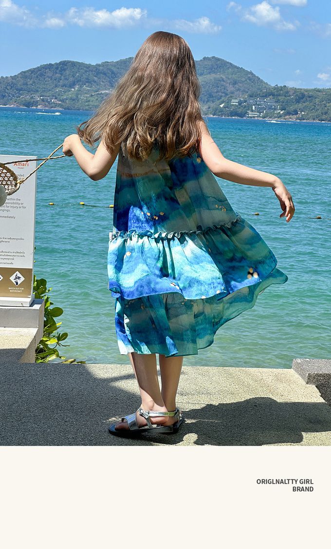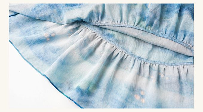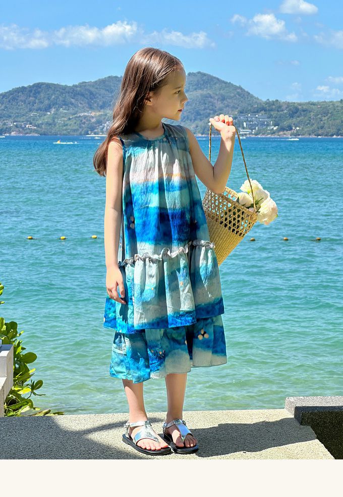 蔚藍星海多層荷葉邊無袖洋裝-暈染藍