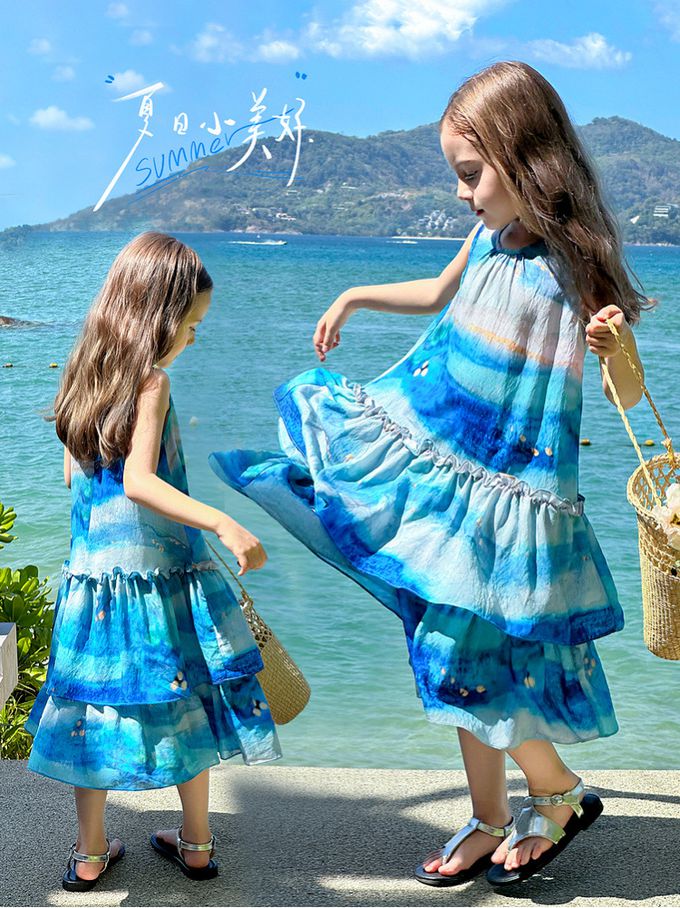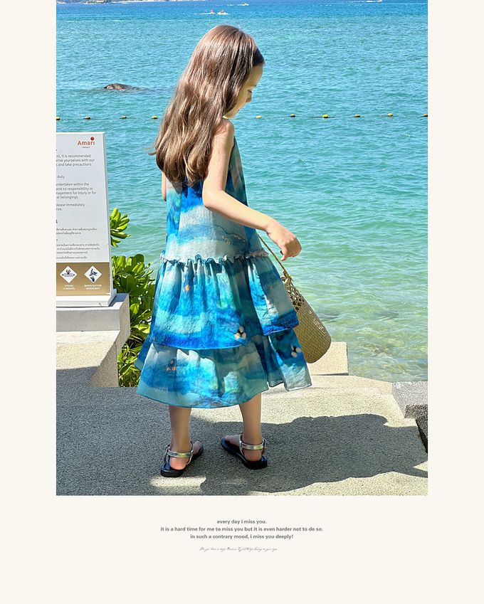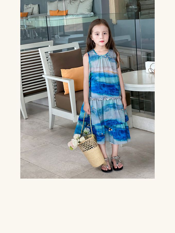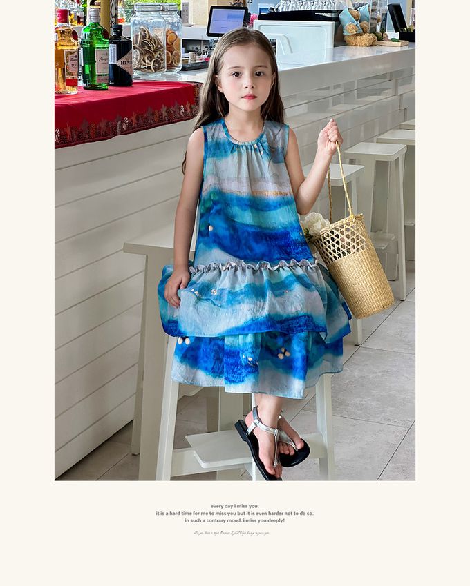品名:蔚藍星海多層荷葉邊無袖洋裝