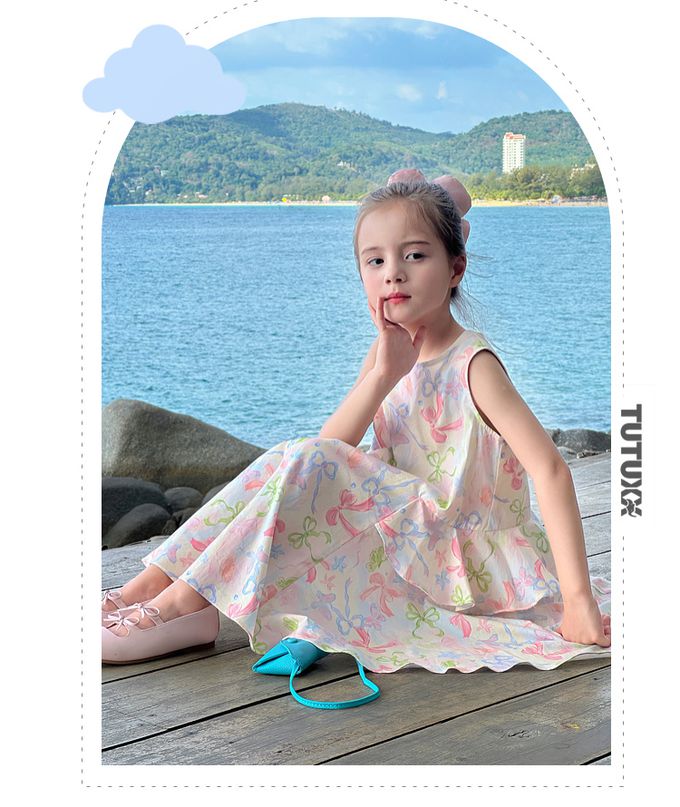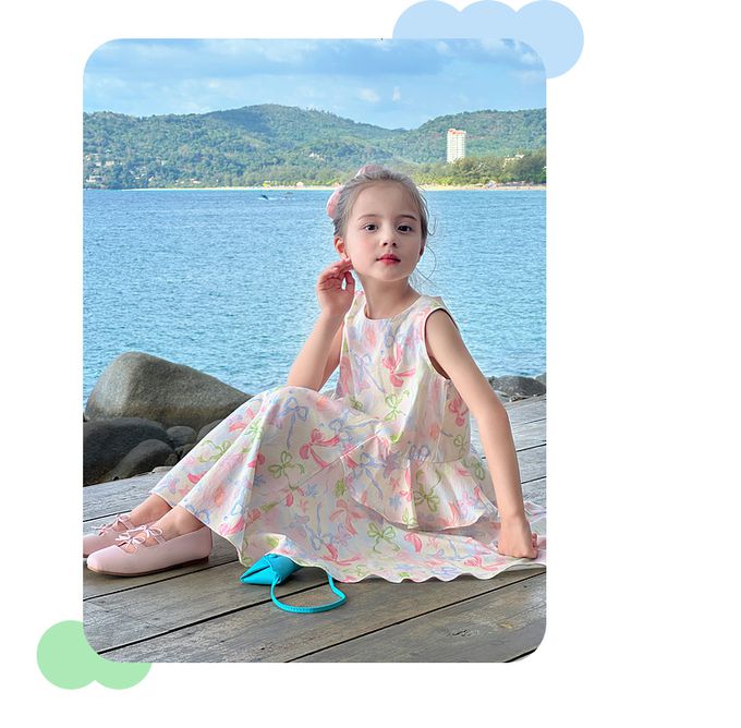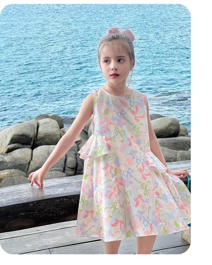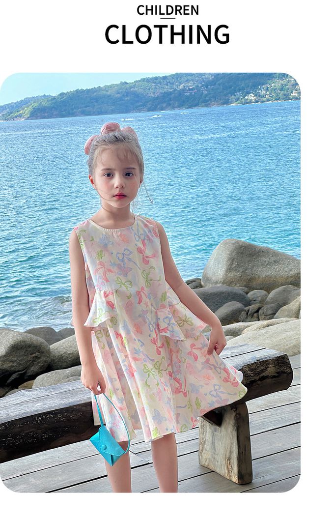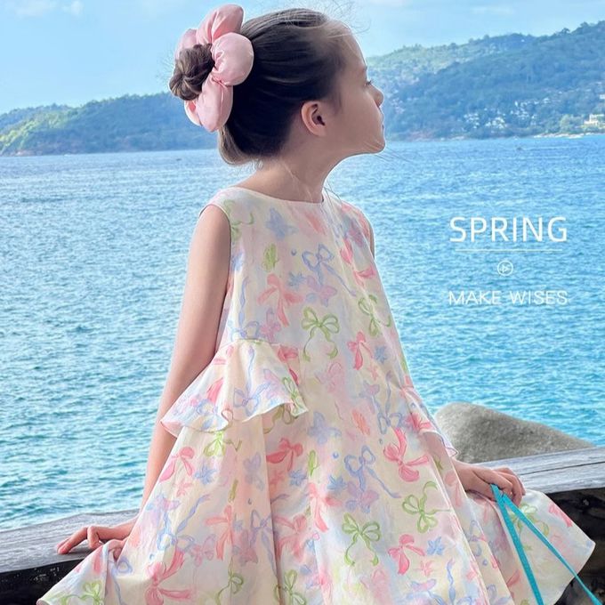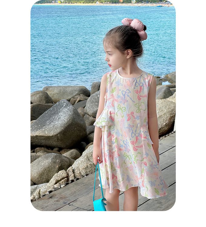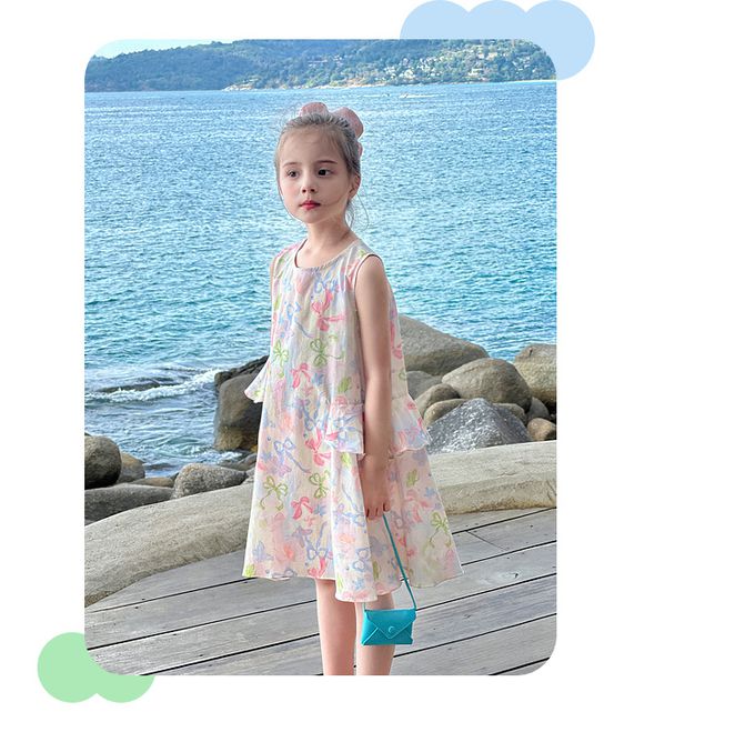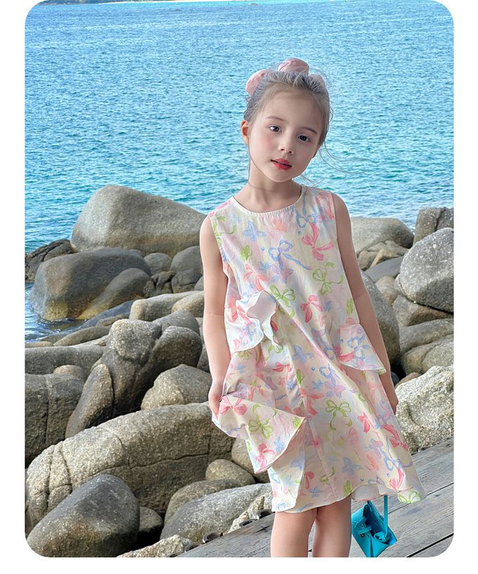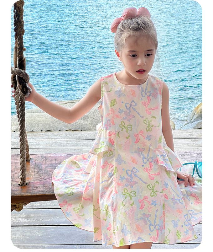 品名:夢幻蝴蝶結荷葉邊無袖洋裝