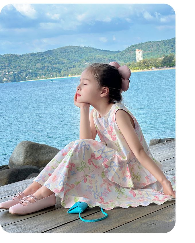 夢幻蝴蝶結荷葉邊無袖洋裝-粉色