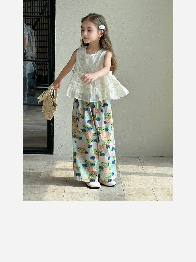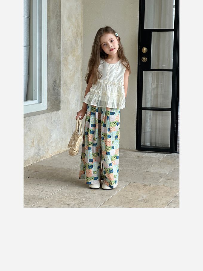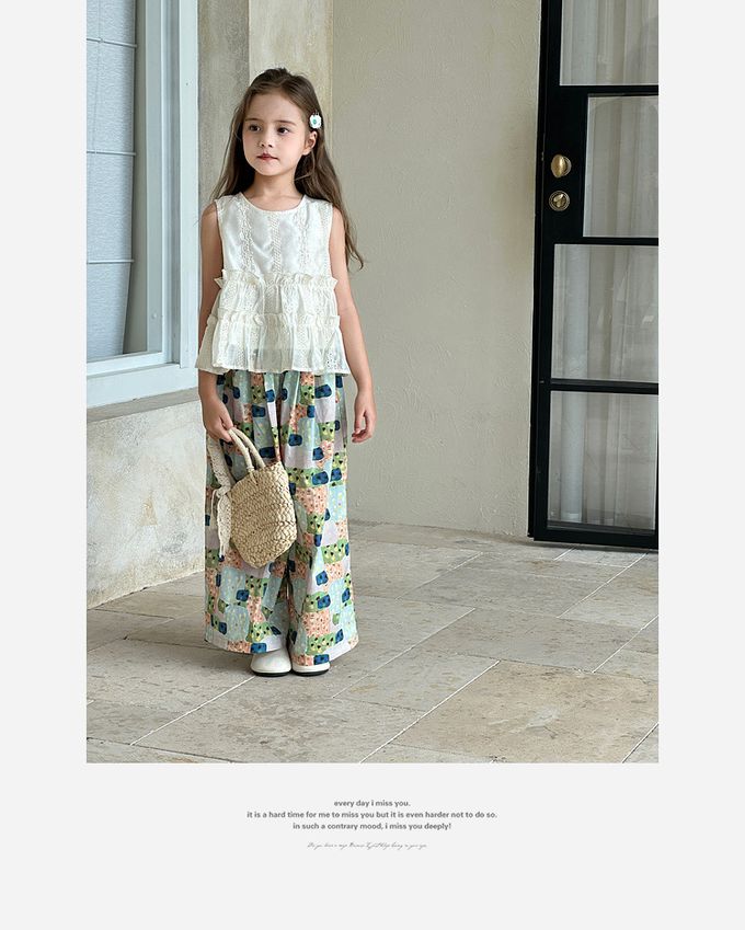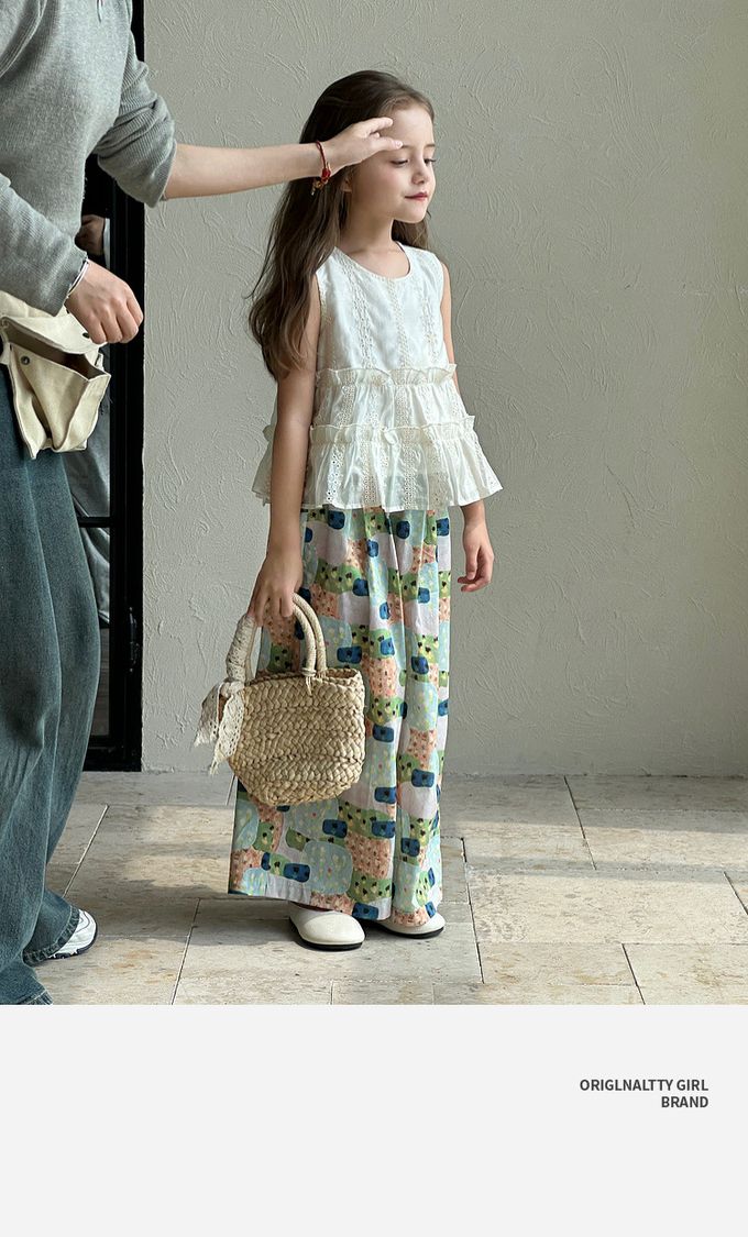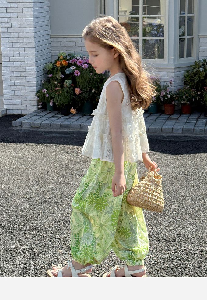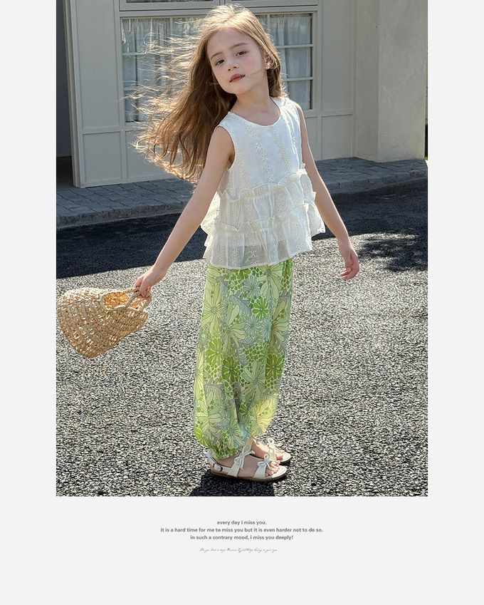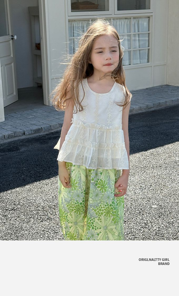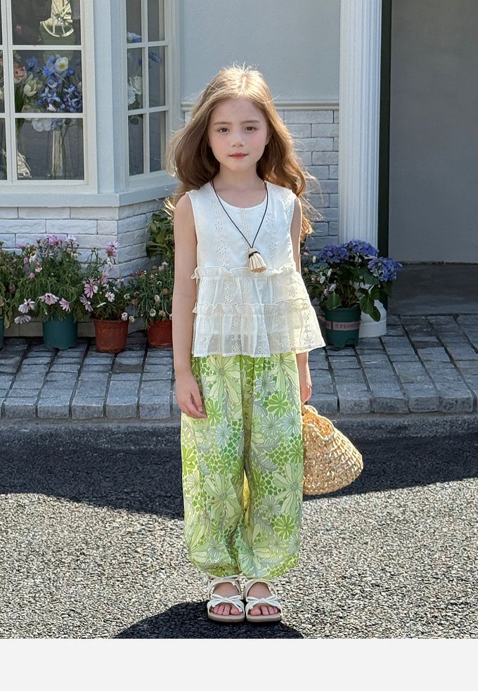 天絲法式簍空繡花荷葉邊背心-米杏色