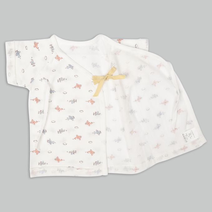 新生兒短袖肚衣2件組-綁帶款飛機-淺藍色 (50cm)