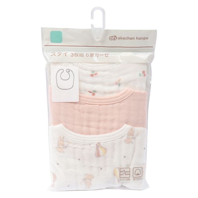圍兜3件組-6層棉紗-粉紅色 (70~95cm)