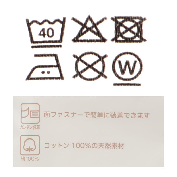 注意事項:●標示內容遵照台灣法規之規定。●請使用洗衣網。●請將魔鬼氈黏上後再洗滌。