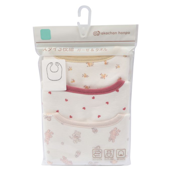 akachan honpo - 圍兜3件組-毛巾布&棉紗-紅色 (70~95cm)